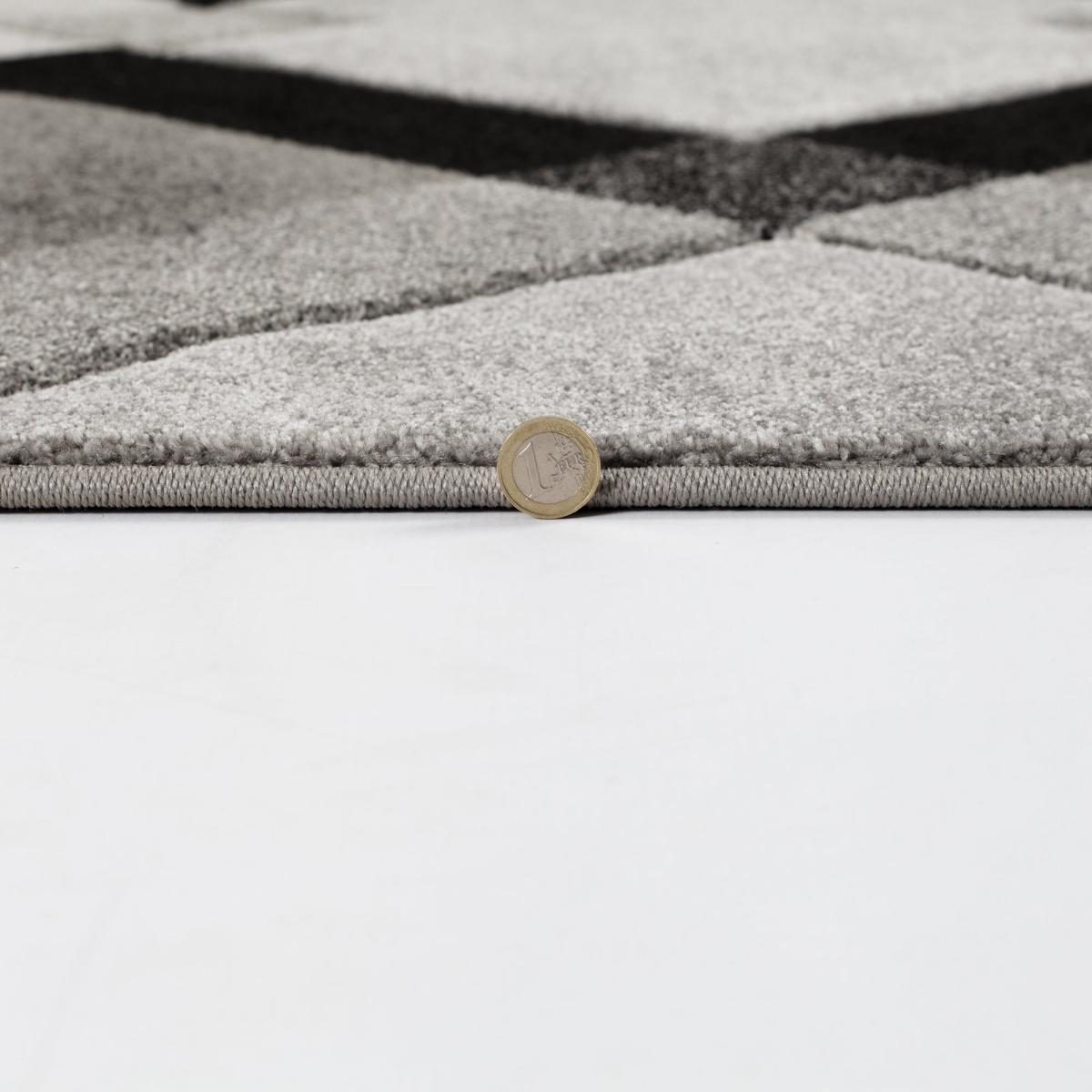 Bring your living room bang up to date with this striking geometric design rug, enhanced by its hand carved pattern. The soft yet durable polypropylene materials make this rug perfect for high foot traffic areas of your home. When opening, re-roll your rug pile out and leave in a warm room for 24 hours before putting in place, this will help to reduce wrinkles and curling from packing. Do not pull any loose threads, please cut them carefully with scissors to remove. Turn your rug regularly to ensure even wear and to reduce pressure marks from furniture. Suitable for use with a heated floor. Before using any cleaning products on your rug, test on an inconspicuous area first to ensure it does not affect the colour. Clean spills immediately by blotting with a clean dry white cloth - do not rub as this may stain the fibres. Vacuum your rug regularly to remove everyday dirt, we recommend the use of a suction type vacuum cleaner or change your roller setting to the highest setting to reduce contact with the pile.