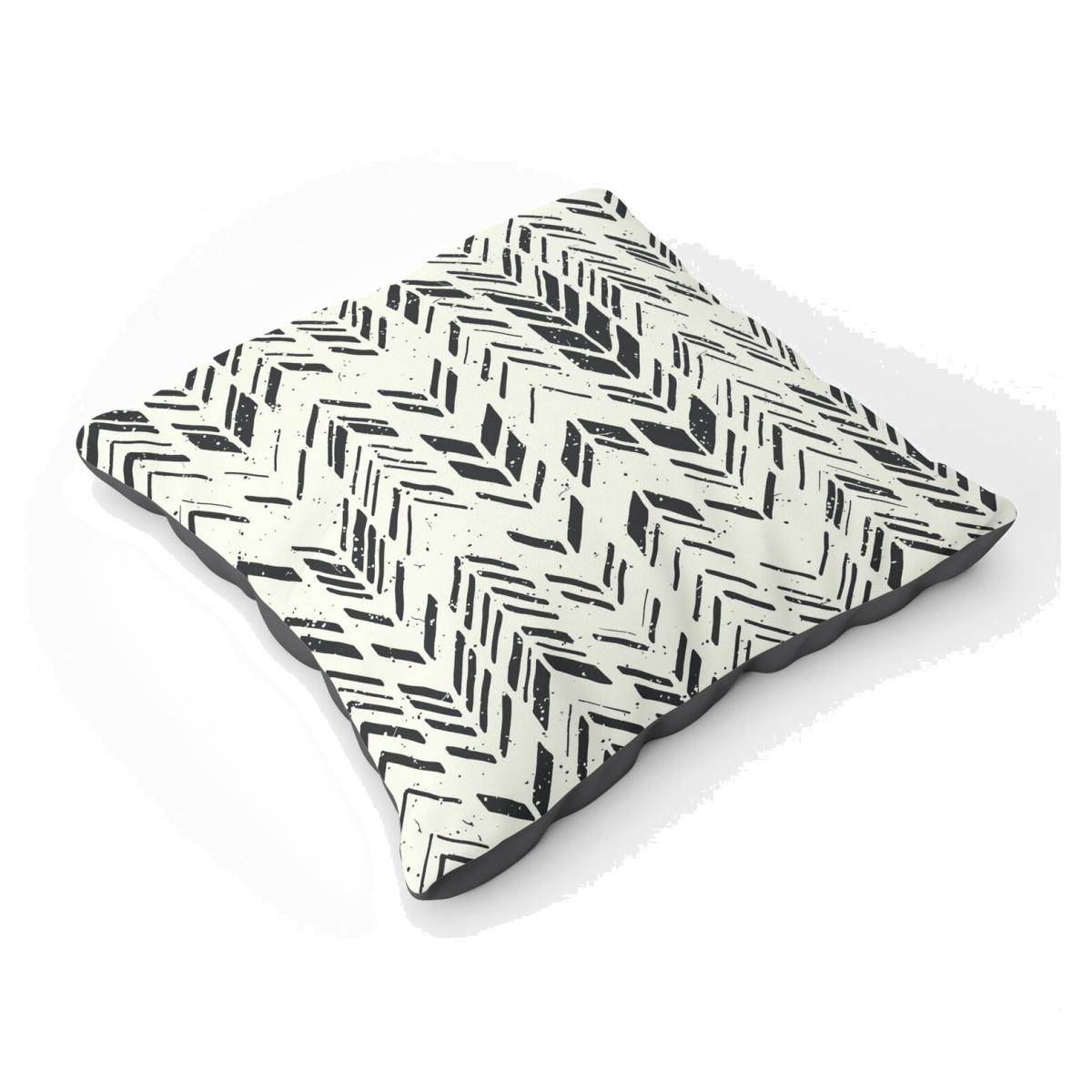 Hand Drawn Chevron Pattern Floor Cushion - Black