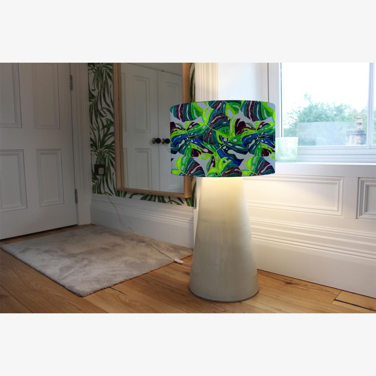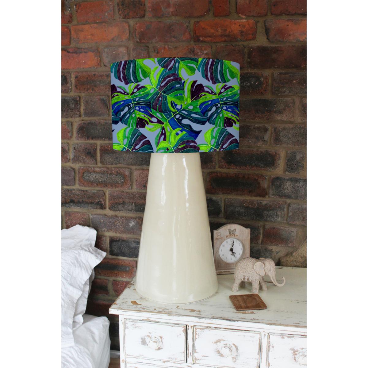 I love this hand drawn exotic plants lamp shade for adding a pop of colour and an element of nature-inspired design to diverse interiors. Its vibrant green and playful leaf motifs make it particularly effective in boho, eclectic, or jungle-themed spaces, but it can also serve as a lively accent in modern schemes when paired with neutral tones. For practical styling, consider placing it in a corner or near reading areas where its colours can stand out without overwhelming the space. It pairs well with other natural textures like wood or rattan and works beautifully in rooms that benefit from a cheerful, organic touch, providing both functionality and a touch of artistic flair.
