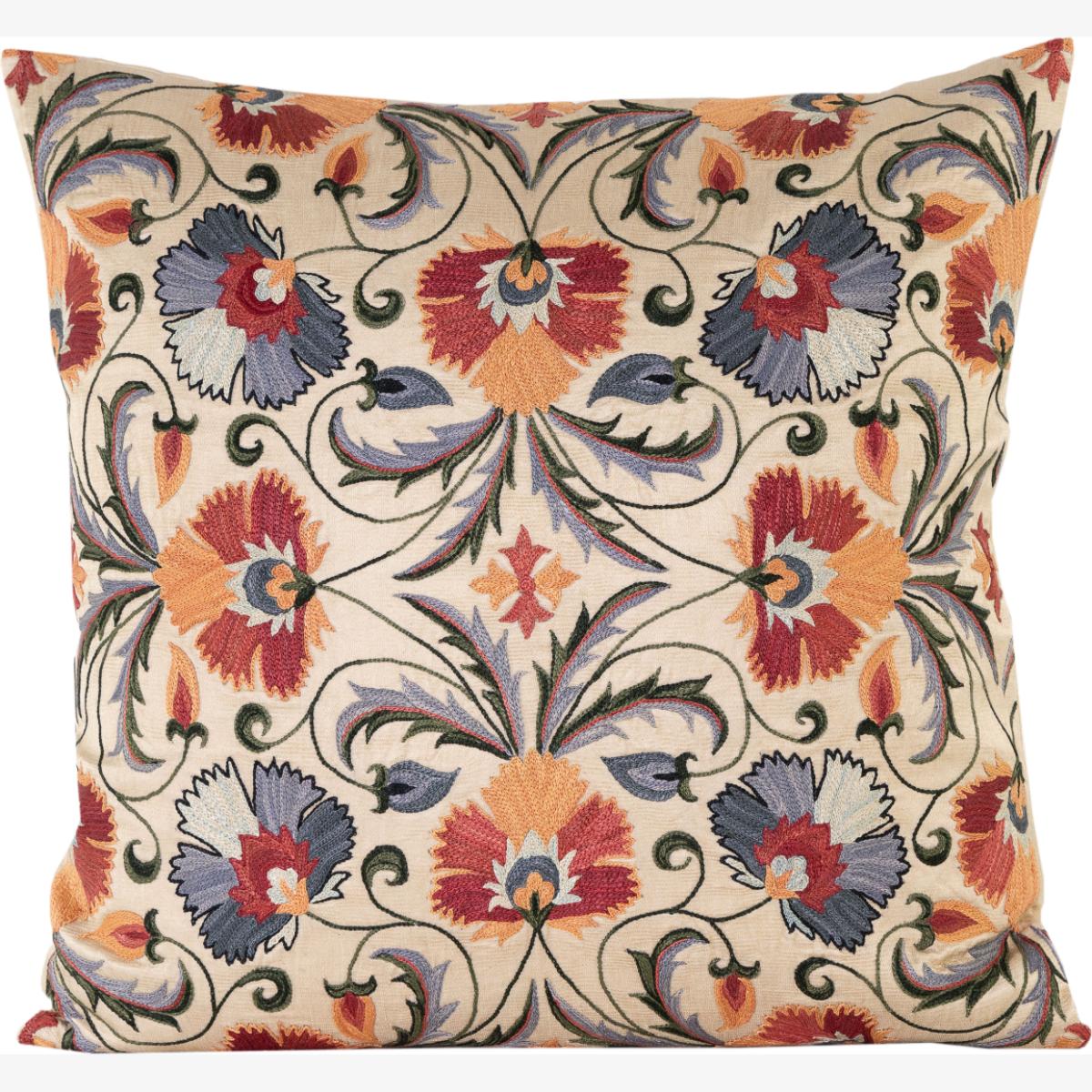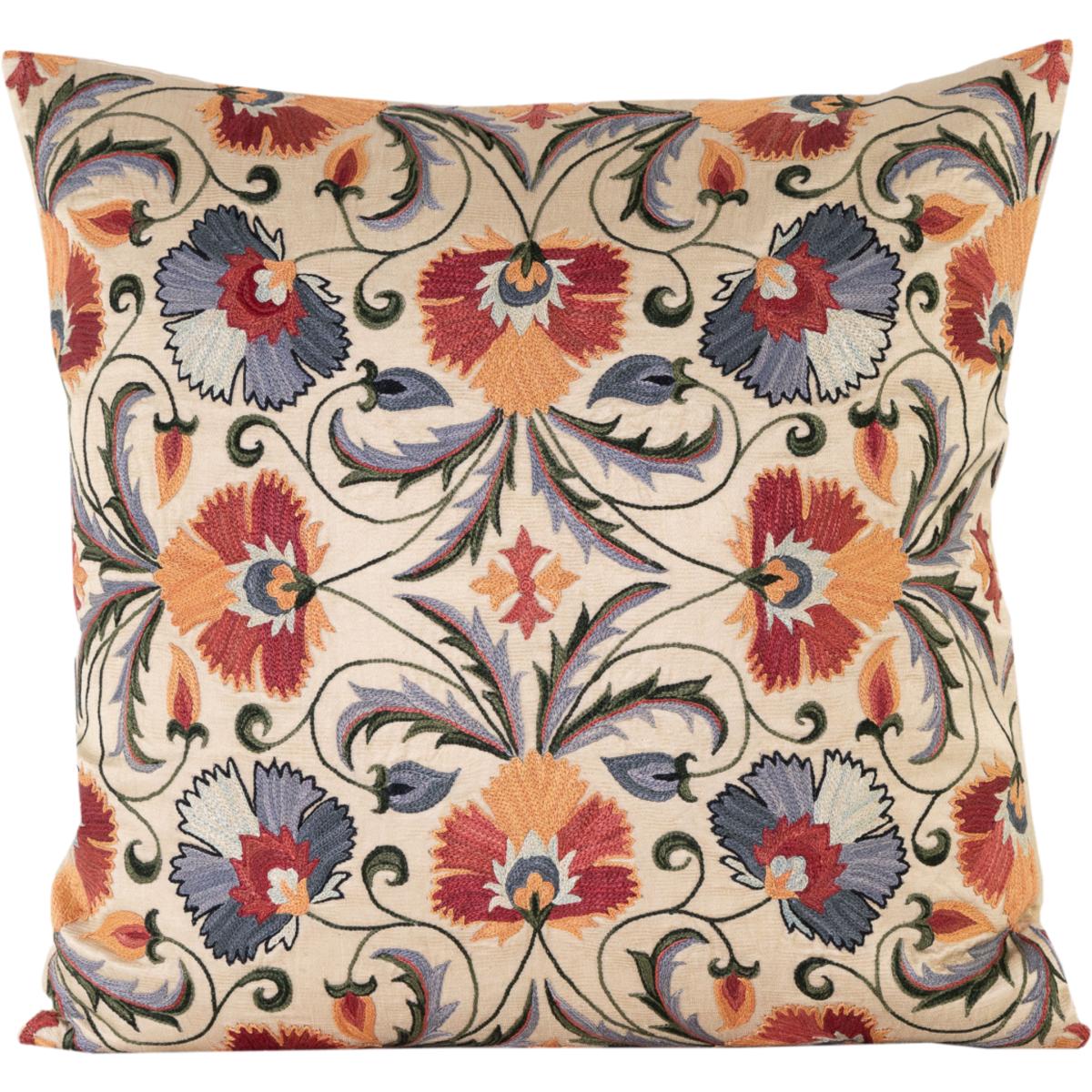 Our luxurious embroidered Carnations cushions have been inspired by original design motifs of Uzbek Suzanis that have been individually hand-embroidered onto the hand-woven silk-cotton fabric. Each item is made with a tremendous amount of care and with our own heritage rooted in Uzbekistan, we work directly with artisans that we know and who are among the most talented in their field. Due to the hand-made nature of our cushions, there may be slight variations in patterns and colours in the material, which all adds to the unique nature of each item.
