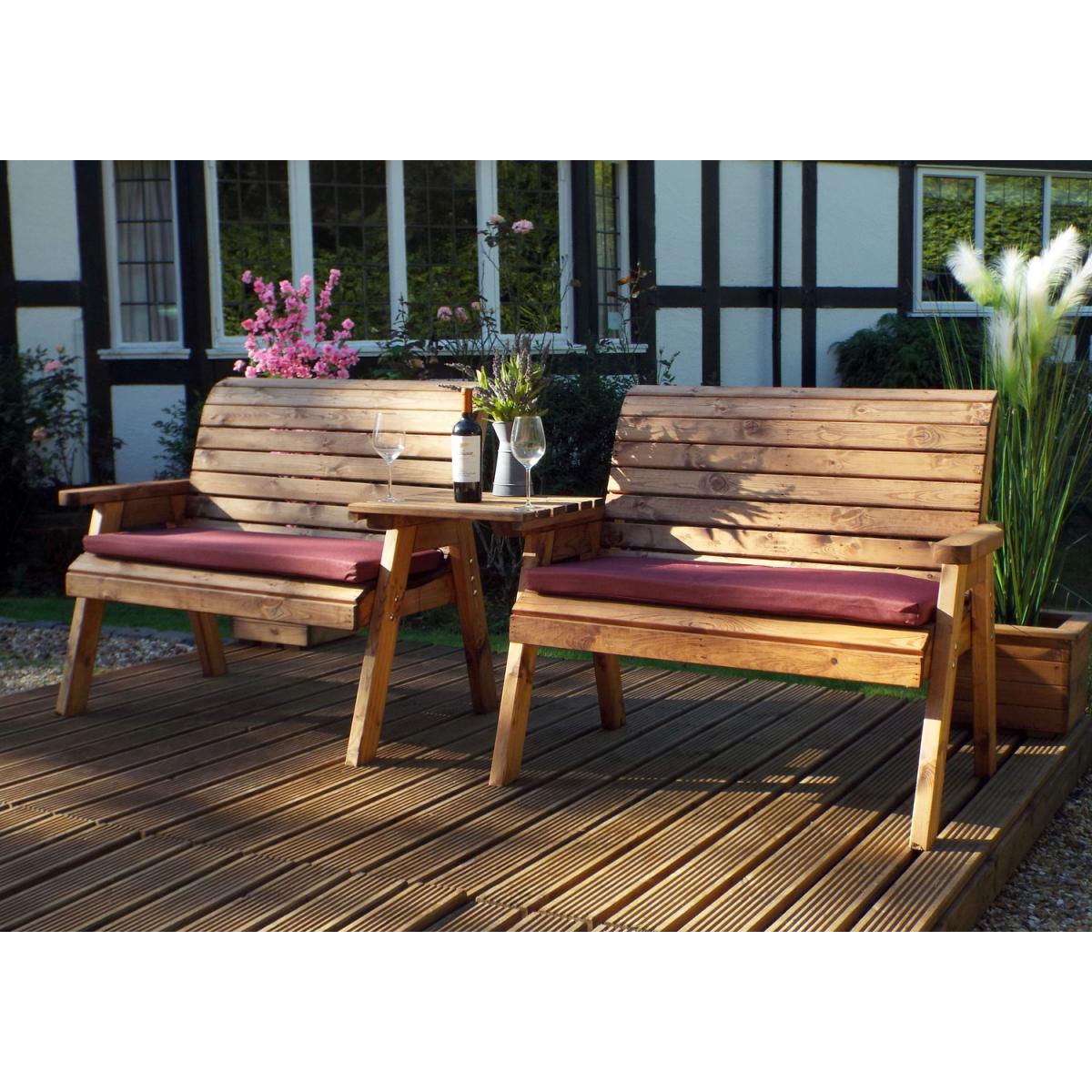 This set contains 2 benches with a detachable straight tray - Ideal for creating a romantic area for four to sit and relax. Each piece is hand made in Staffordshire, England from solid Scandinavian Redwood Framework and legs made from 2842mm thick wood, and slats made from 20mm thick wood. Supplied pre-treated making it ready to go straight into your garden.