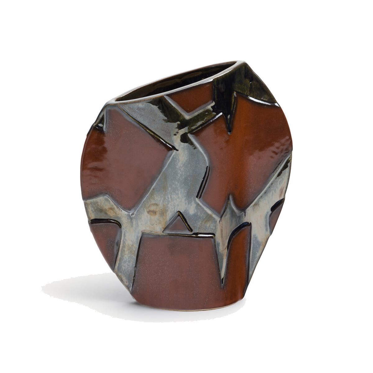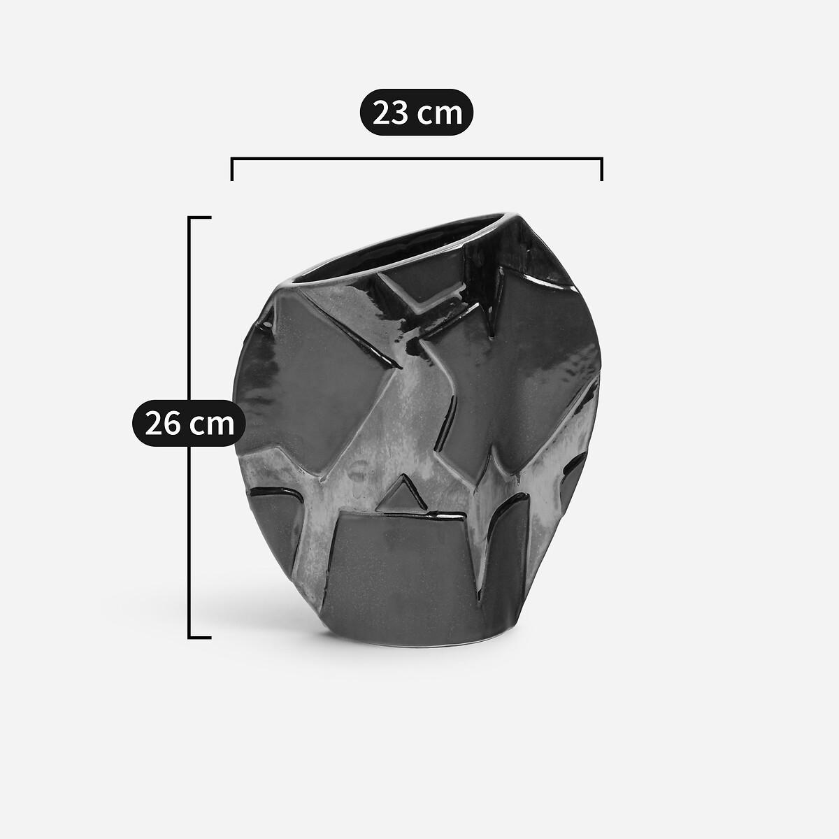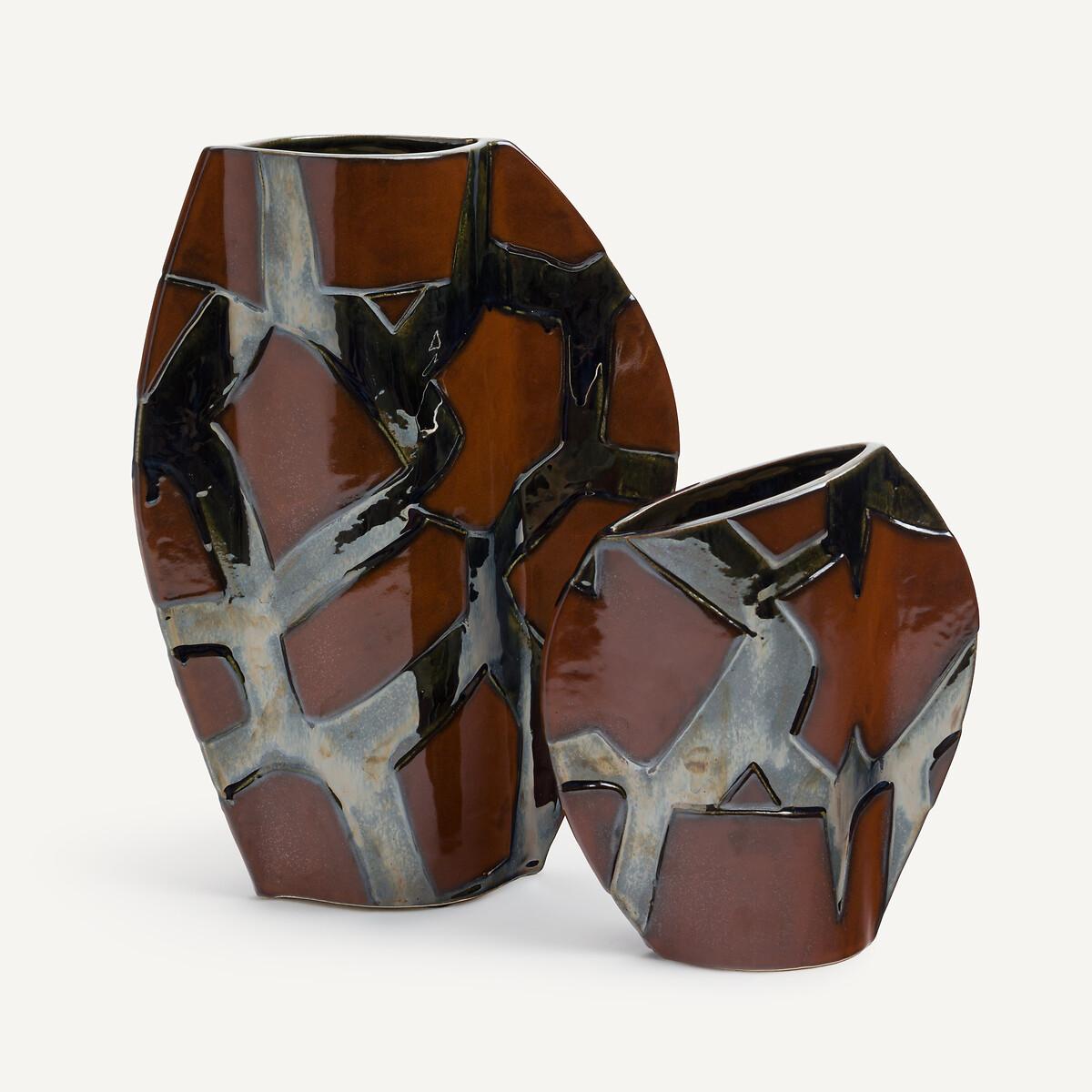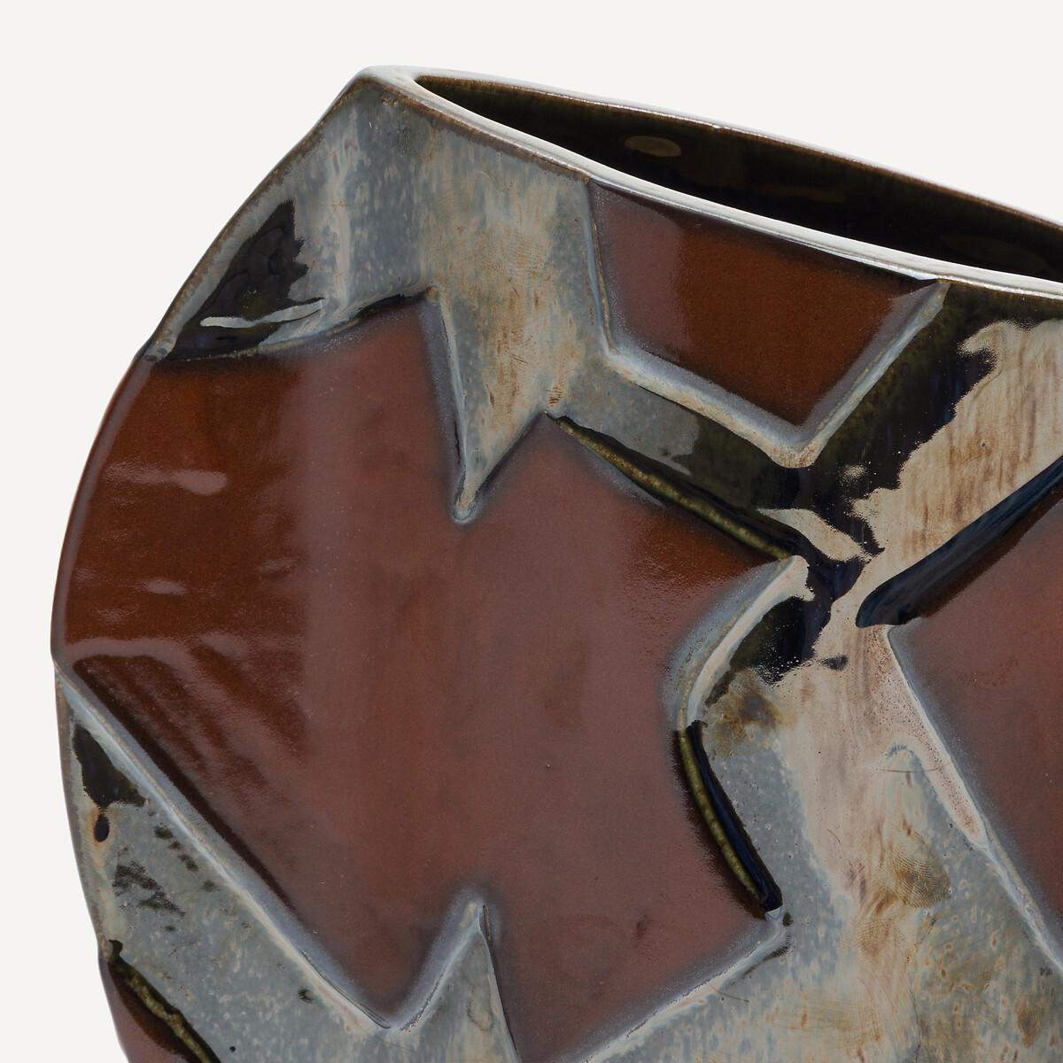 From every angle, this vase reveals its uniqueness. Its atypical shape, created by the continuous lines of its design, is enhanced by the hand-applied metallic glazed stoneware. A traditional technique that brings out the vibrant colours, from the deepest brown to the brightest silver. Product Details • Enamelled ceramic, hand-applied metallic enamel • Hand-crafted, each piece is unique. Shapes, colours and dimensions may vary slightly from product to product. Care Advice Ceramic is a solid material resistant to shocks, scratches and stains.. It can be cleaned with a damp sponge. Dimensions • Width: 23cm • Height: 26cm • Depth: 8cm. Dimensions and weight of parcel1 parcel • W32 x H35 x D17cm, 1.9kg