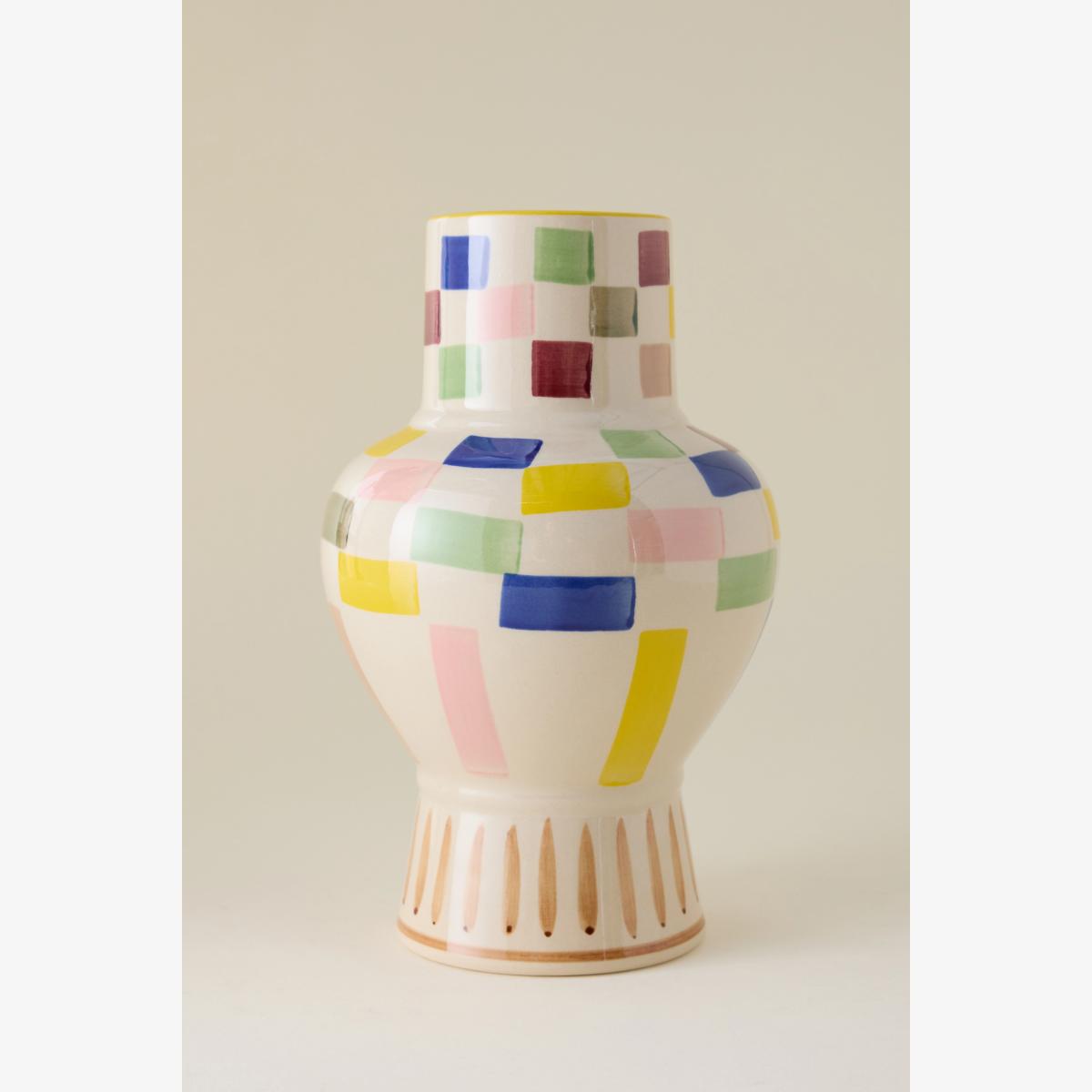 Hand-Painted Check Stoneware Vase