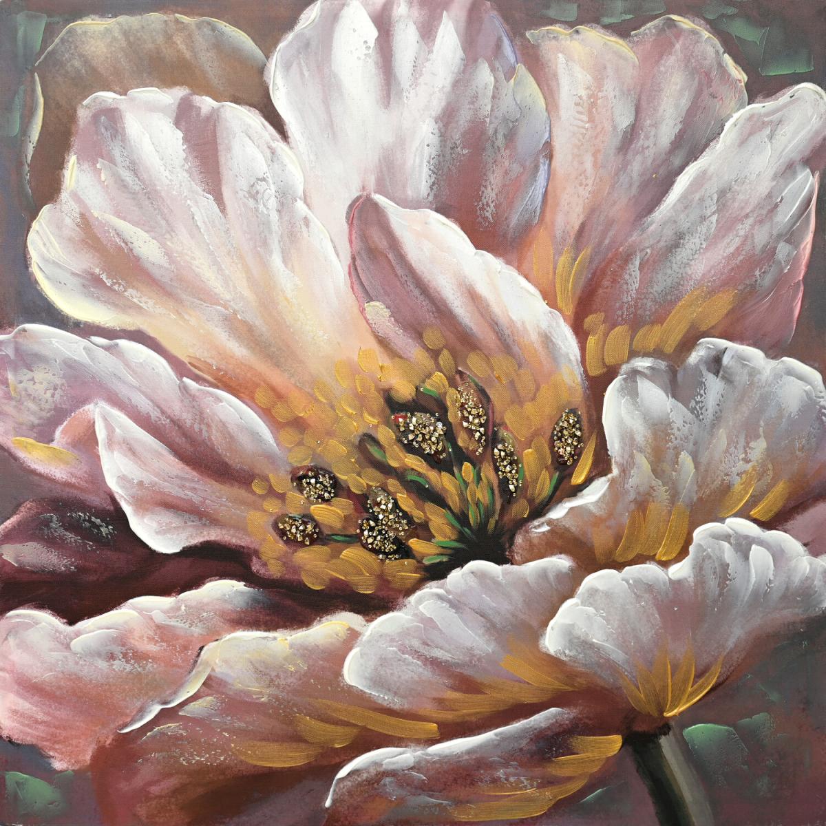 This Hand Painted Pink Jewelled Flower Canvas is the perfect finishing touch for your living room, bedroom, or hallway. The hand-painted canvas features detailed artwork of a pink flower accented with jewelled elements for a subtle, luxurious shimmer as it hangs on your wall. The large size will make it a beautiful centrepiece, giving any room a relaxed and sumptuous feel. It's easy to coordinate with your decor thanks to the pale pink tones, natural elements, and charming pops of yellow.