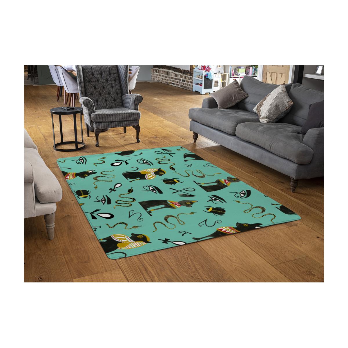 I love this one because of its bold, artistic design and rich green hue, which can inject intrigue into both contemporary and eclectic interiors. It's especially practical in living rooms or spaces that embrace global or historical themes, as it pairs well with neutral furniture or other decorative motifs inspired by ancient Egypt. When styling, consider keeping surrounding decor minimal to let the eye-catching pattern stand out, or coordinate with other Egypt-inspired accessories for a cohesive look. Its size makes it versatile for small to medium spaces-perfect under a coffee table or in front of a sofa-adding a splash of colour without overwhelming the room.
