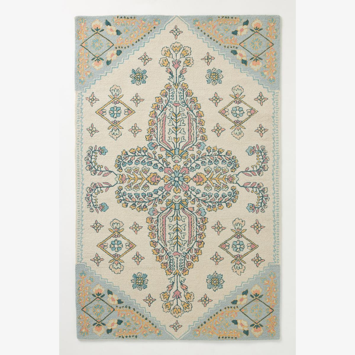 Pastel hues offer a modern update to a traditional Persian-inspired rug, making it a timeless, serene choice for a bedroom, home office, or living room. * Exclusively for Anthropologie * 100% Hand-tufted Wool; Cotton backing * Due to the handcrafted nature of this item, expect slight variation in the appearance of each unique piece * Using a tufting tool, yarn is passed through a frame-stitched fabric backing on which a pattern has been drawn * Rug pad recommended to prevent slippage and protect your floor * Rotate periodically for even wear * Shedding is a normal process that occurs with natural fiber rugs; it should subside after 6-8 weeks with regular vacuuming * To avoid damage, vacuum with the beater bar off, using a high-pile setting * Blot spills immediately with a clean, absorbent white cloth * Professionally clean for best results * Imported