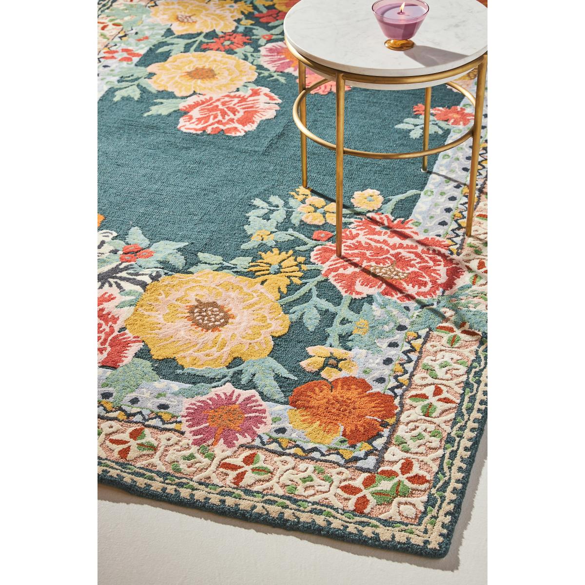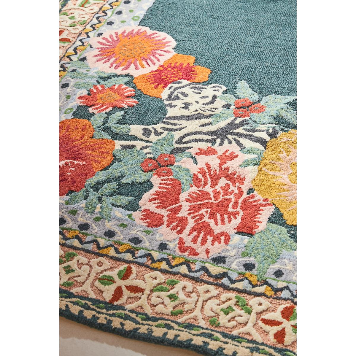 Bright blooms are framed in an intricate, vivid pattern, making this rug the perfect statement piece for a bedroom, entryway, or living room. * Tufted 73% Wool, 27% Rayon; Cotton backing * Using a tufting tool, yarn is passed through a frame-stitched fabric backing on which a pattern has been drawn * Suitable for high traffic areas * Rug pad recommended to prevent slippage and protect your floor * Rotate periodically for even wear * Shedding is a normal process that occurs with natural fiber rugs; it should subside after 6-8 weeks with regular vacuuming * To avoid damage, vacuum with the beater bar off, using a high-pile setting * Blot spills immediately with a clean, absorbent white cloth * Professionally clean for best results * Imported