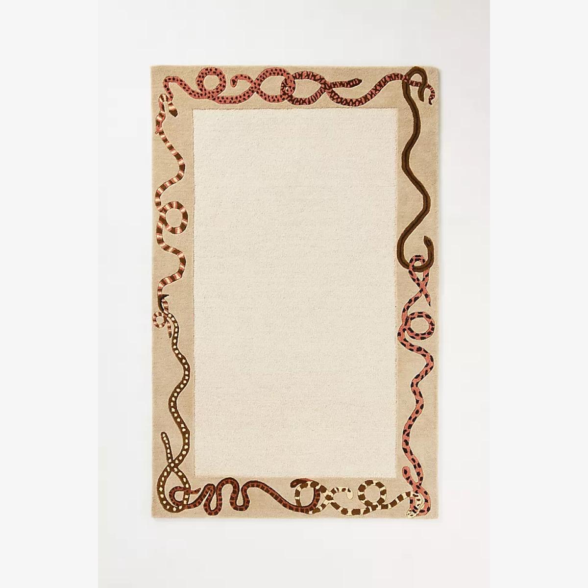 I’m a fan of the Marwa rug for its clean, natural ground and subtle snake-border detail - it feels fresh without overwhelming a space. It works particularly well in contemporary Scandi or pared-back schemes where you want a hint of character, as well as in more eclectic rooms that can carry the graphic border. For styling, use it to anchor a neutral seating group or hallway runner, pair with light-wood furniture and soft linens, and avoid clashing patterns so the border remains the focal point. It also layers nicely over a jute mat for added texture.