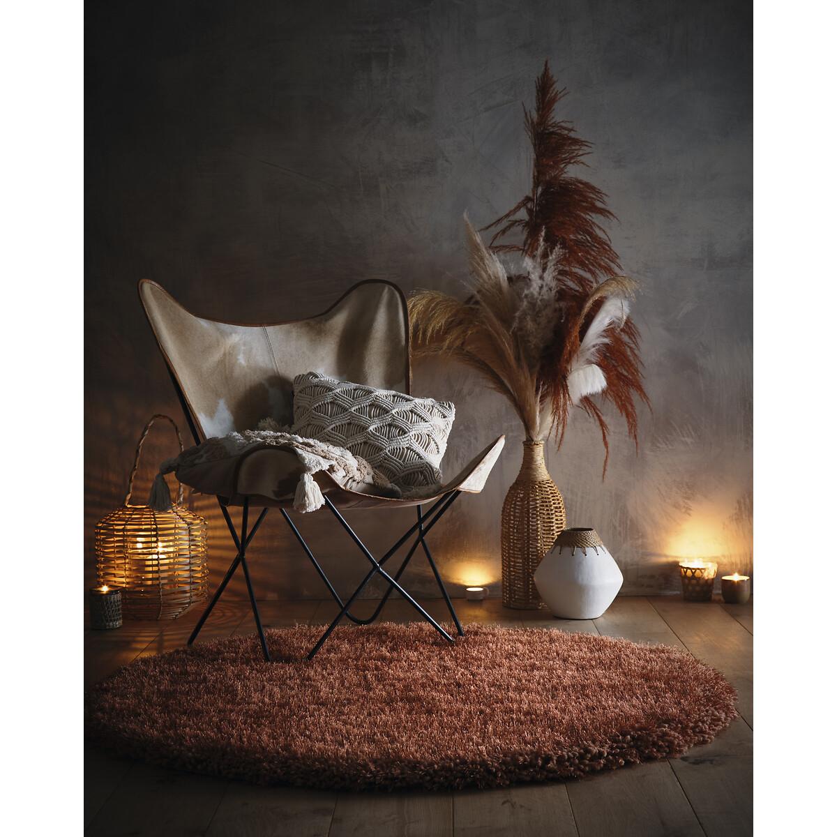 I love this shaggy circle rug because it adds instant texture and warmth to a room, making it perfect for cosy living spaces or irregularly shaped areas. Its shimmer finish elevates the look, making it versatile enough to work in both contemporary and boho interiors. For styling, consider placing it under a statement coffee table or in front of a sofa to create a welcoming focal point. Pair it with neutral tones to let the rug stand out, or add complementary cushions or throws with metallic or earthy accents for a layered, lived-in feel. Because of its shaggy texture, it’s best suited to low-traffic areas to keep it looking its best, and pairing it with a non-slip rug pad will ensure it stays in place.