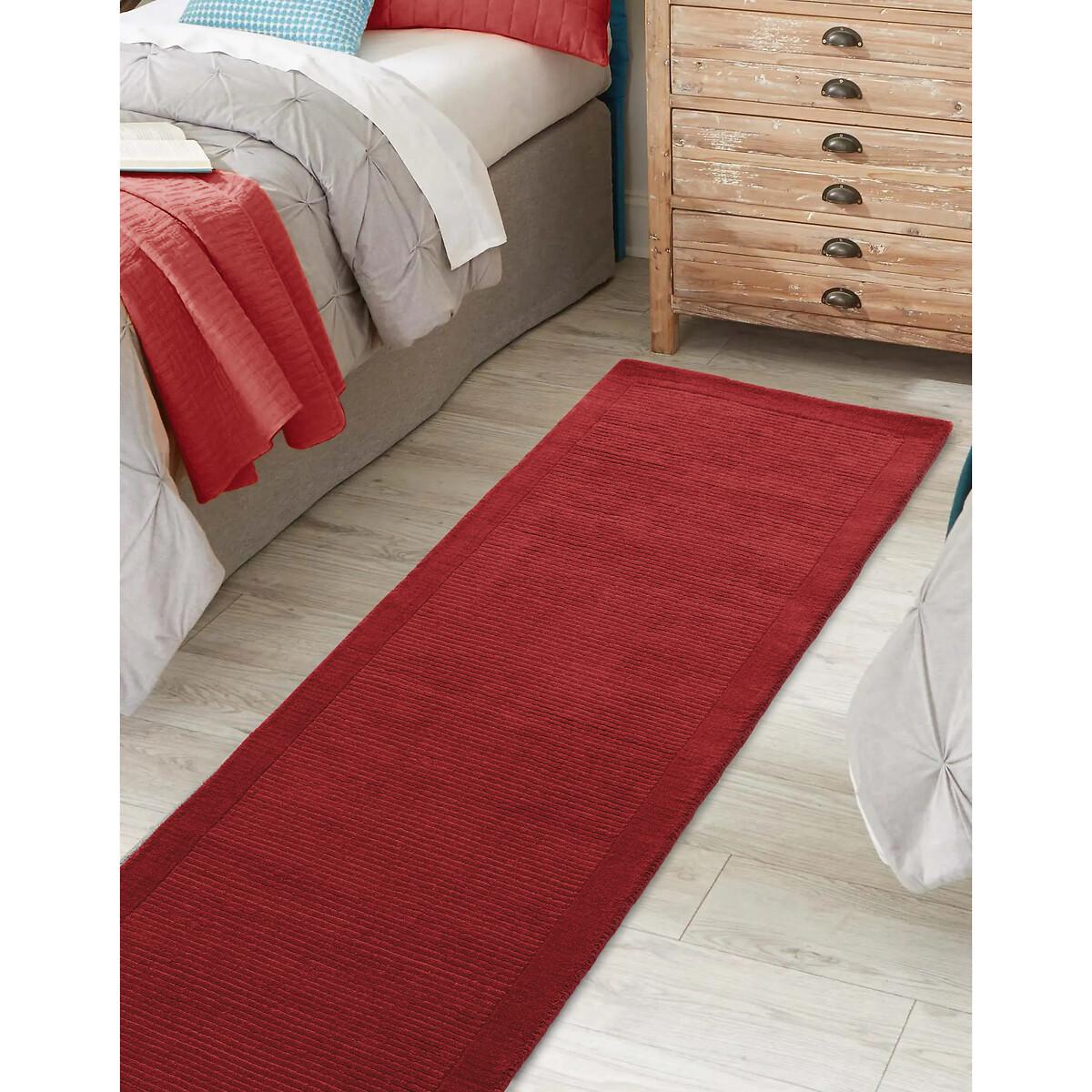 This hand-woven wool rug is a versatile piece that works well in both traditional and contemporary interiors, adding a pop of colour and texture to any space. Its practical size makes it suitable for hallways, kitchens, or a cosy reading nook. I love it for its durability and natural wool feel, which brings warmth and comfort underfoot. To style it effectively, consider pairing with neutral or wooden furniture to let the vibrant red stand out, and layer with cushions or throws in complementary shades for a curated look. For a more modern edge, keep surrounding decor minimalist, allowing the rug to be the statement feature.