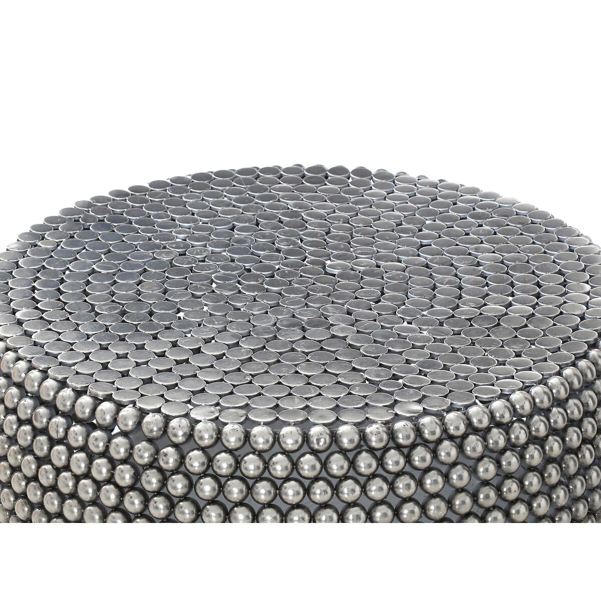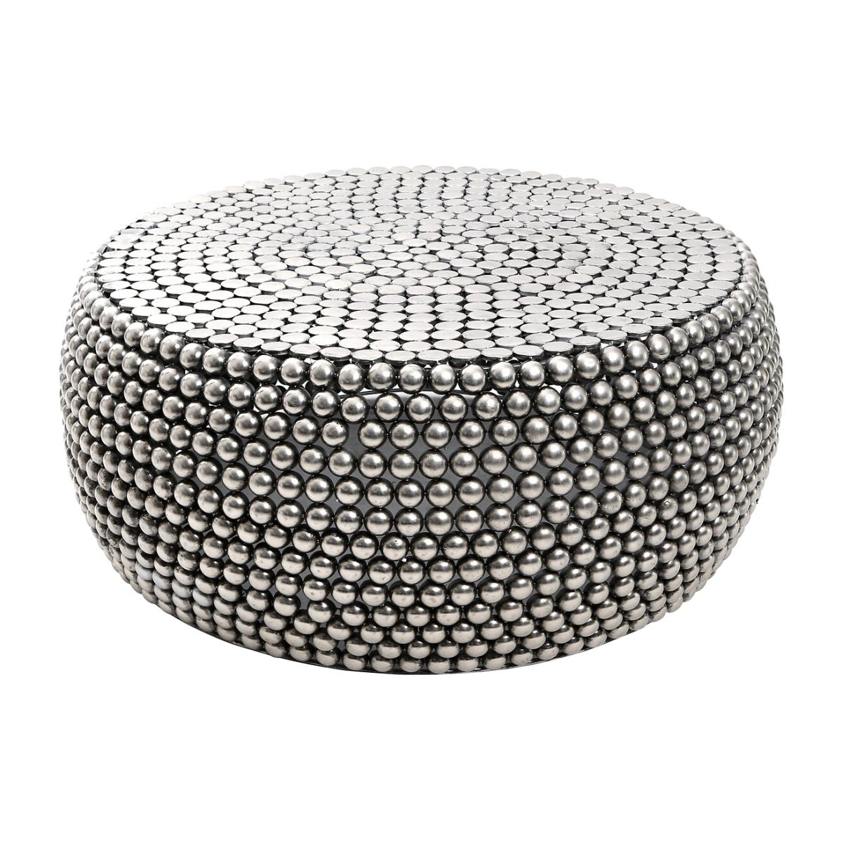 The side of this striking coffee table is comprised of a series of interlinked iron beads. Their rounded form complements the individual flattened iron circles that combine to create its round surface area. Crafted by hand, each table possesses its own individual variations. Style this eclectic table with traveller/fusion home furnishings and accessories. *This item is handcrafted so please expect slight variations to the finish*Product Dimensions: 81cmx81cmx34cm Please remember to measure your available space before ordering. Packaged Dimensions: 88cmx 88cmx 38cm Weight: 15.6kg. This product will be dispatched by one of our trusted suppliers. You’ll be contacted by their selected courier about your delivery.