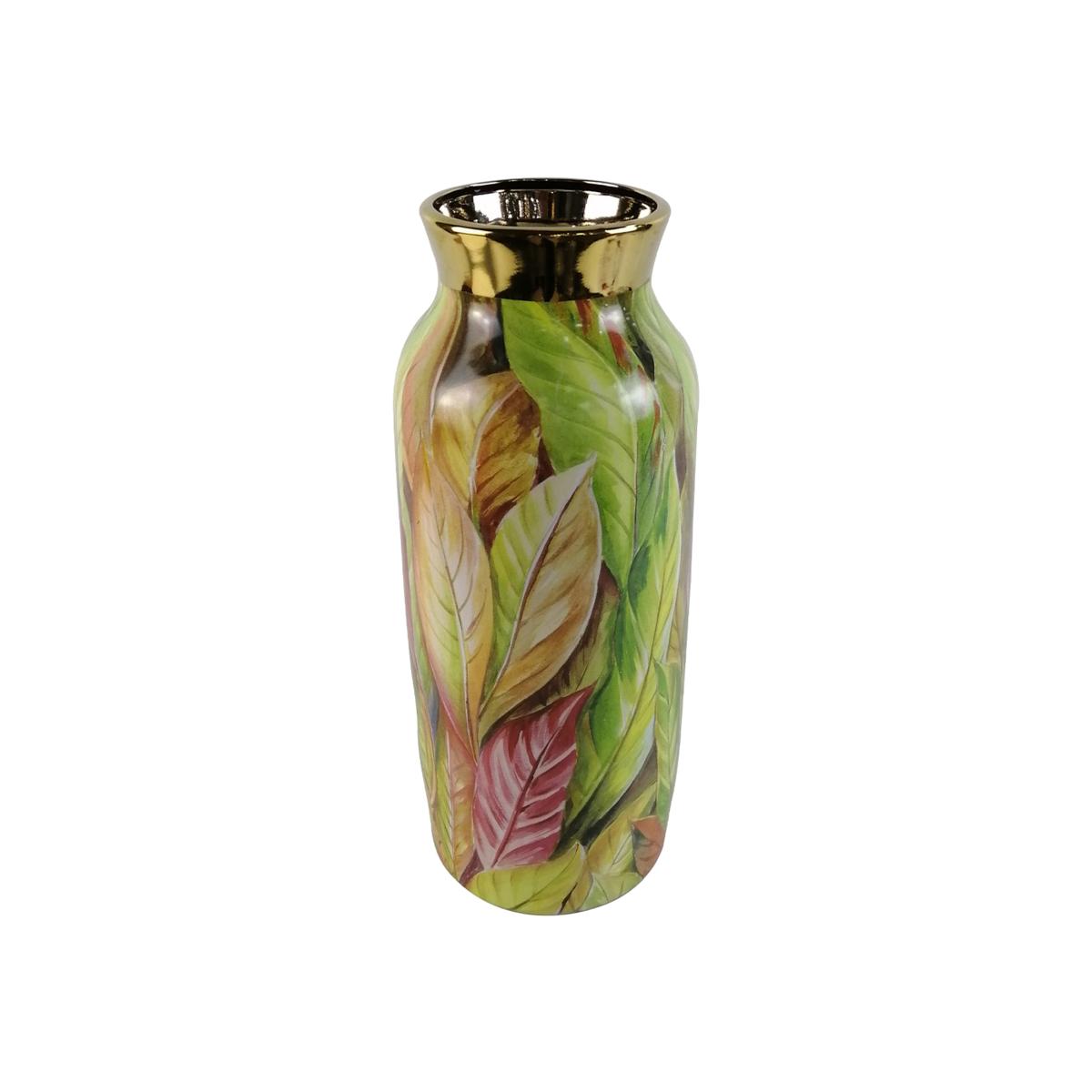 This handmade ceramic vase with a leaf design is a charming addition to your living room decor. Its intricate leaf detailing adds a natural and elegant touch to any space, making it a perfect accent piece for modern and traditional interiors alike. Ideal for fresh or artificial flowers or as a standalone decor item, this vase brings timeless beauty and sophistication to your home. This handmade large ceramic vase with green and pink leaves design is a stunning modern accent piece for your living room. The intricate leaf pattern and vibrant color combination add a touch of nature and elegance to any space. Perfect for displaying flowers or as a standalone decor item, this vase brings a fresh, contemporary vibe to your home while showcasing its artistic craftsmanship.