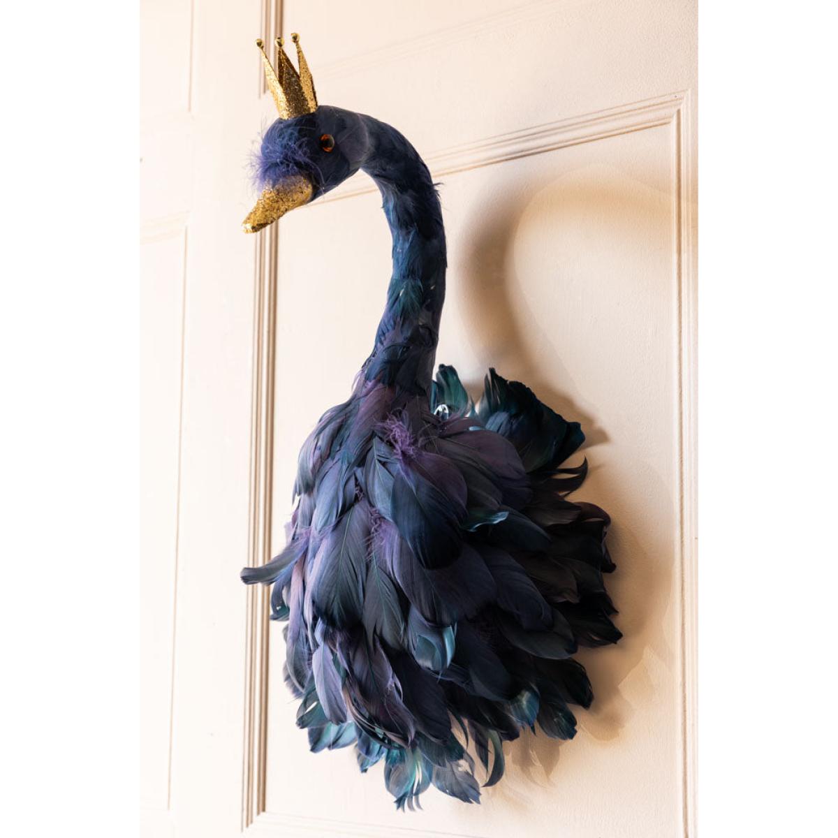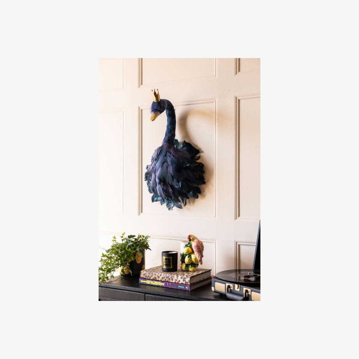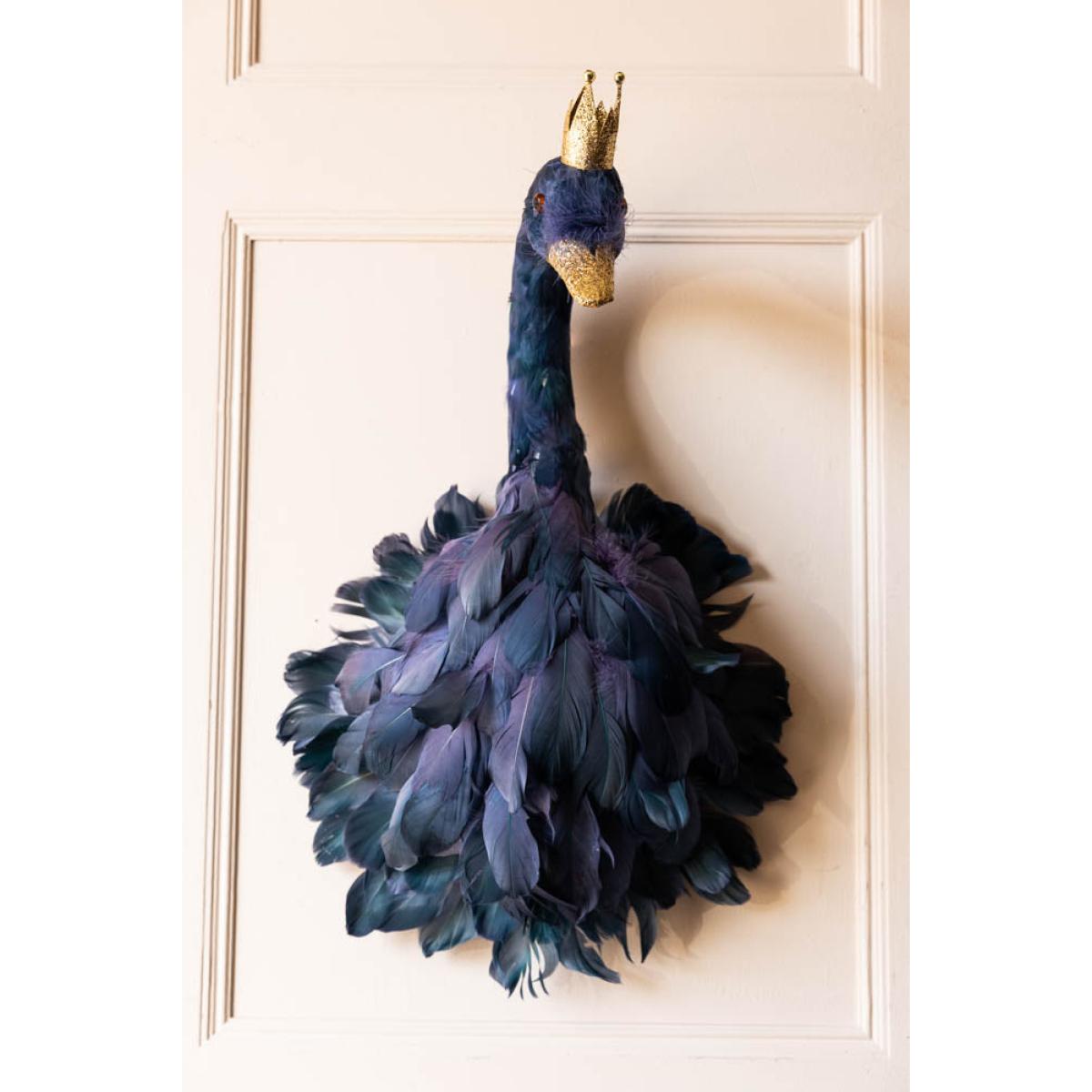 Meet your new royal roommate: the Handmade Indigo Swan Head Wall Art. This isn’t just quirky home décor, it’s drama with feathers. Cloaked in the deepest, most delicious indigo, she’s draped in glossy, layered feathers that shimmer darkly in the light – like she’s just glided straight out of a midnight fairytale. And let’s talk about that crown: perched delicately on her regal head, it’s the perfect touch of glittering gold sass. Because obviously, she’s not just any old wall art décor… she’s the queen of darkness. Hang her on your wall and instantly upgrade your space from cute to majestic dark glam. She’s bold, she’s elegant, and she absolutely knows she’s got the hierarchy. Perfect for anyone who likes their wall hangings with a side of mystery, mischief, and unapologetic style. - Handmade Indigo Swan Head Wall Art- Measures: W35cm x H65cm - Materials: Foam & Feather