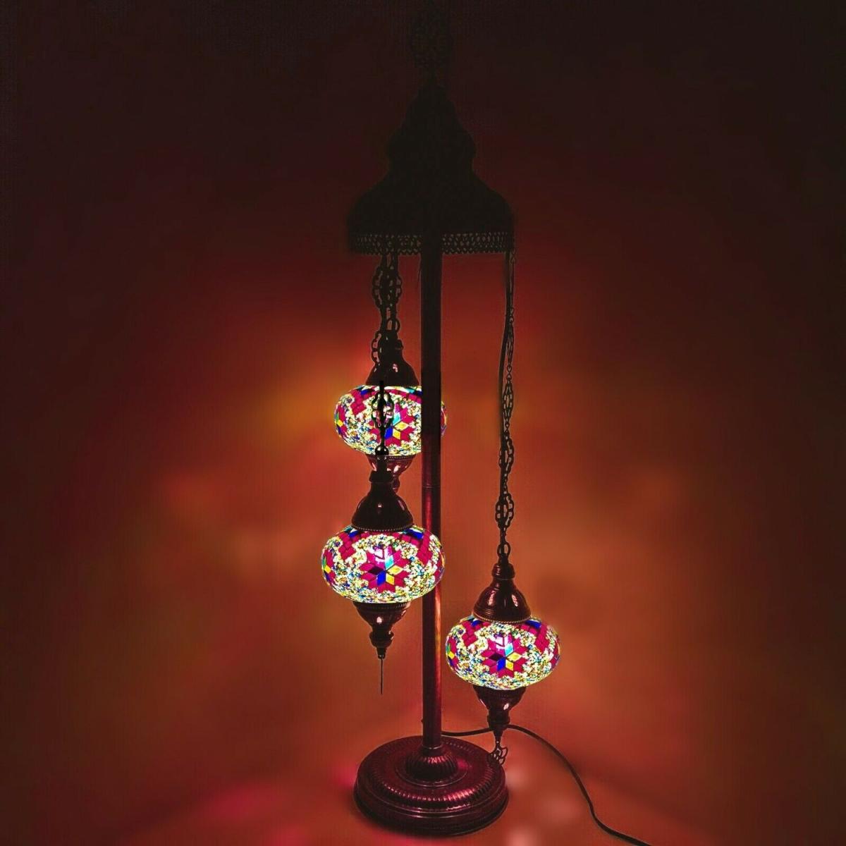 These beautifully hand crafted floor lamps, exclusively by World Home Living, create light that beautifully blends into many different environments and settings. All lamps supplied by World Home Living conform to strict CE and UKCA standards. Similar lamps that are cheaper or bought in Turkey are not built to the required quality. Not only does the lamp feature a distinctive metal design, providing for a more stable and solid base, but the glass is stained and not painted. This ensures the lamp retains its beauty and quality. This lamp from World Home Living will bring a world of colours and designs into your home creating those special moments with friends and family.