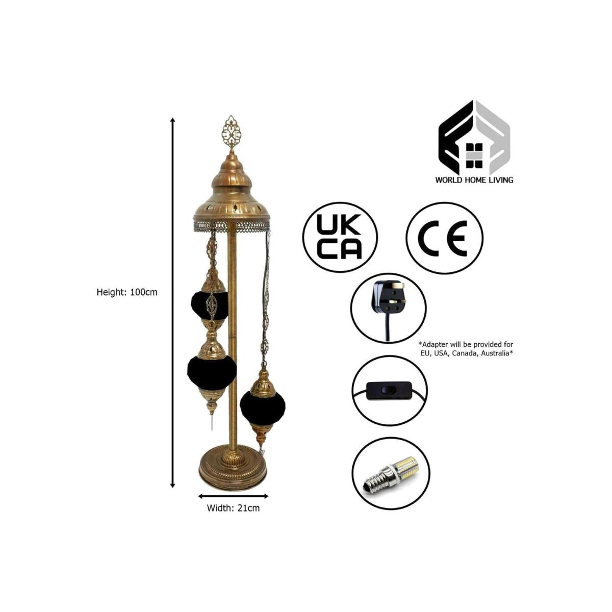 These beautifully hand crafted floor lamps, exclusively by World Home Living, create light that beautifully blends into many different environments and settings. All lamps supplied by World Home Living conform to strict CE and UKCA standards. Similar lamps that are cheaper or bought in Turkey are not built to the required quality. Not only does the lamp feature a distinctive metal design, providing for a more stable and solid base, but the glass is stained and not painted. This ensures the lamp retains its beauty and quality. This lamp from World Home Living will bring a world of colours and designs into your home creating those special moments with friends and family.