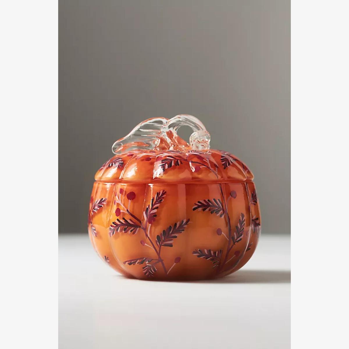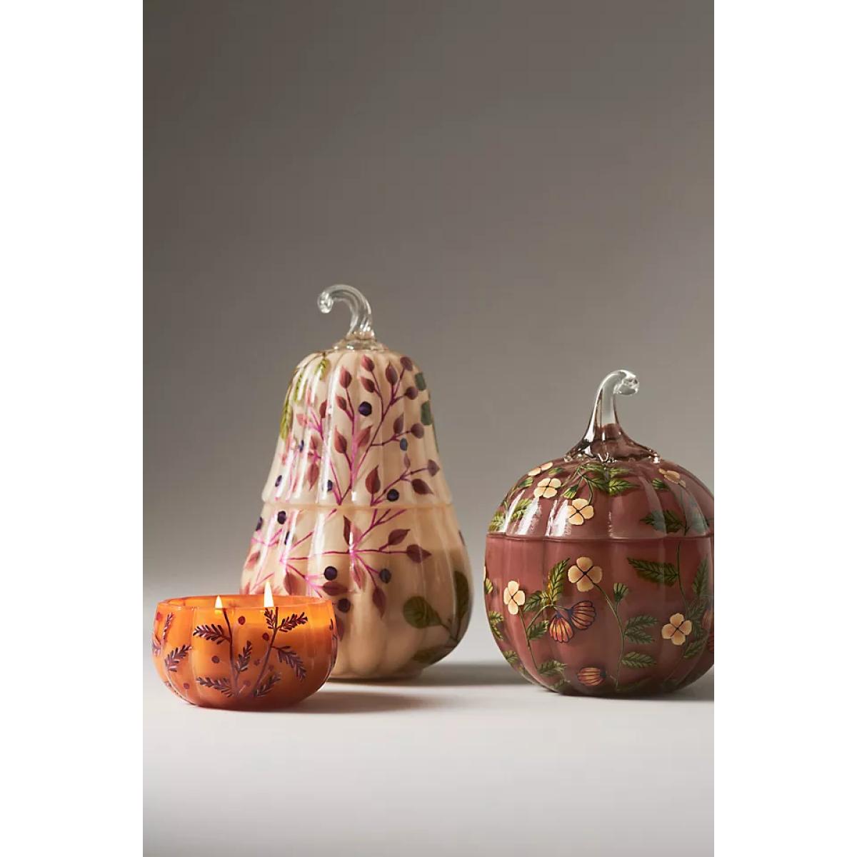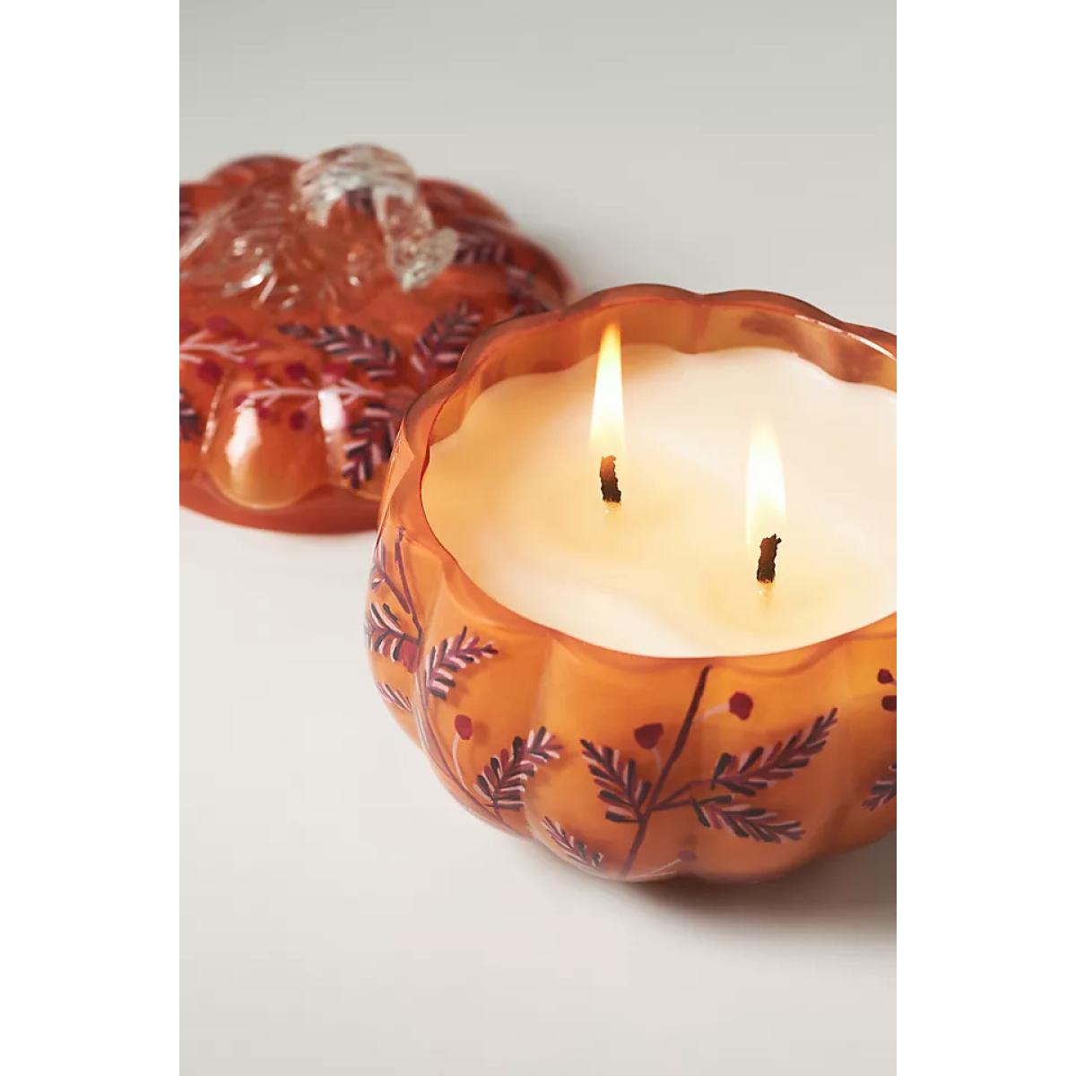 **Pumpkin Sweet Vanilla (Pumpkin Gourmand):** Rich pumpkin soufflé is blended with browned butter, toasted nutmeg and cinnamon then swirled with sweet vanilla cream and brown sugar. *For the best burn experience, keep the following in mind:* * The first time you light your candle, allow it to burn until the wax pool melts all the way to the edge; for a larger candle, this may take several hours. Wax has "memory," so if it is extinguished with a partial pool, that will prevent a full, even pool from forming in the future. * Trim your wick each time you light the candle, removing any "bloom" from the previous burn. We recommend lighting a wick that is 1/4-1/2" in length. * Ensure that your candle is placed on a heat-safe surface. * Do not allow wick trimmings, dust, or other materials to accumulate in the wax pool. * To ensure safety and longevity, be sure to check the bottom of your candle for additional instructions, including details on when to discontinue use. * Exclusively at Anthropologie * 19-hour burn time * Plant-based wax blend; fil-tec candle wick * Glass vessel * Imported