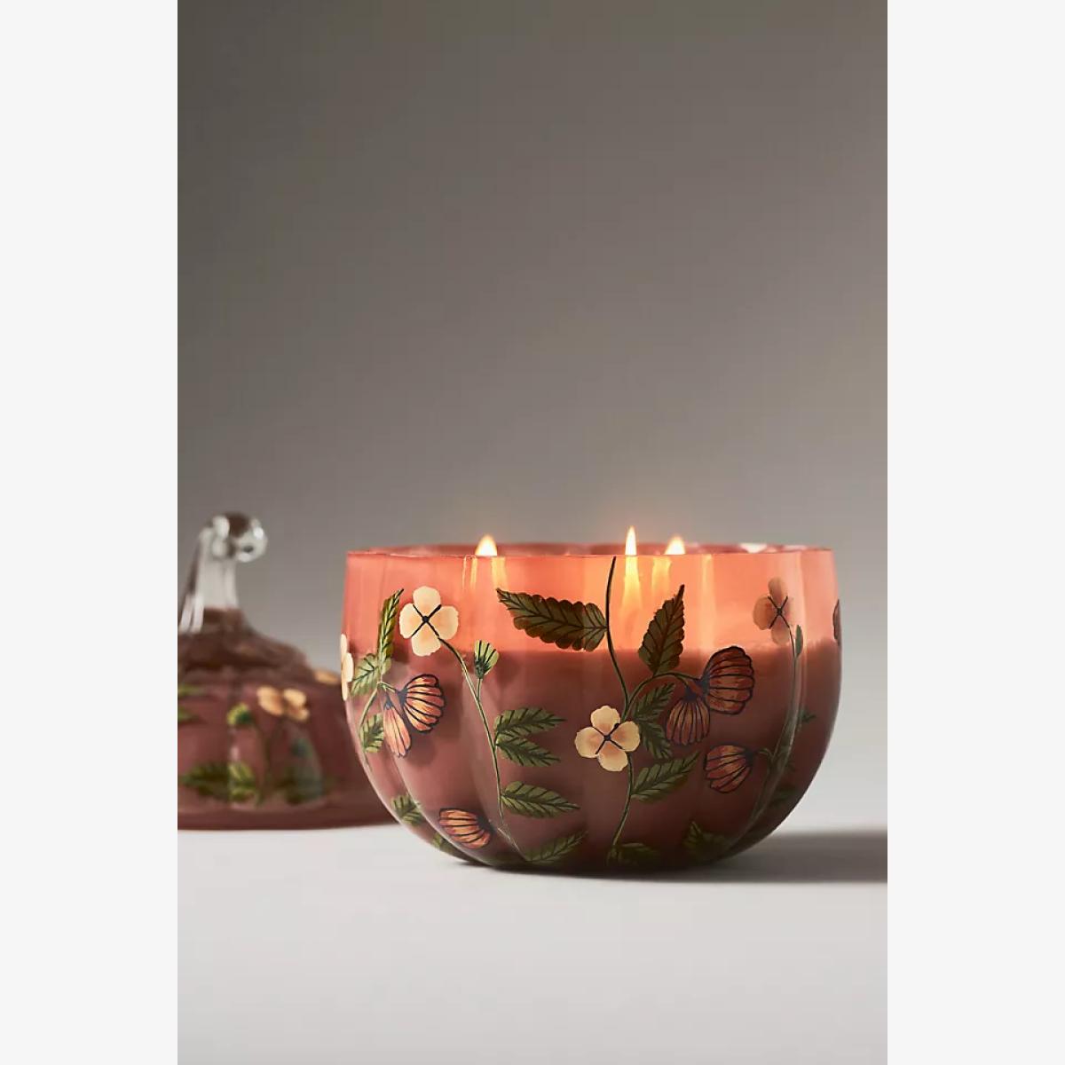 **White Birch & Pumpkin (Pumpkin Woody):** The welcoming allure of soft, comforting flannel folded with the warming nuances of freshly grated nutmeg and crushed cinnamon bark layered amidst glowing, ambered cedarwood. *For the best burn experience, keep the following in mind:* * The first time you light your candle, allow it to burn until the wax pool melts all the way to the edge; for a larger candle, this may take several hours. Wax has "memory," so if it is extinguished with a partial pool, that will prevent a full, even pool from forming in the future. * Trim your wick each time you light the candle, removing any "bloom" from the previous burn. We recommend lighting a wick that is 1/4-1/2" in length. * Ensure that your candle is placed on a heat-safe surface. * Do not allow wick trimmings, dust, or other materials to accumulate in the wax pool. * To ensure safety and longevity, be sure to check the bottom of your candle for additional instructions, including details on when to discontinue use. * Exclusively at Anthropologie * 36-hour burn time * Plant-based wax blend; fil-tec candle wick * Glass vessel * Imported