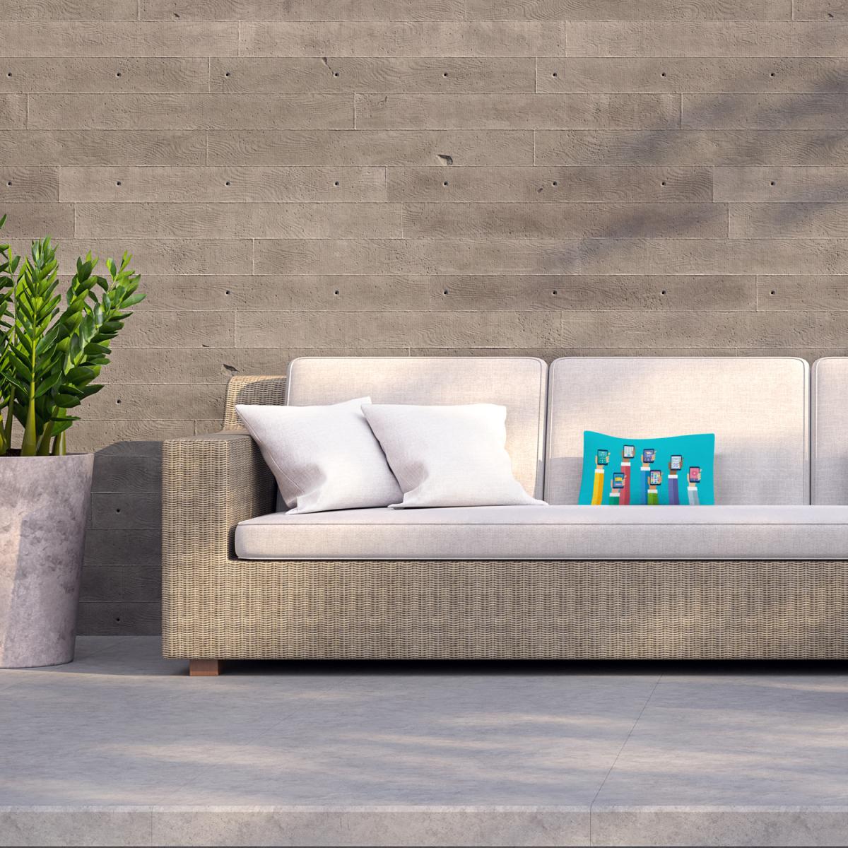 I really like this outdoor cushion as it adds a playful touch with its bright blue colour and fun design; it's perfect for bringing a lively, contemporary vibe to a patio or balcony seating area. Its cheerful hue works well with neutral furniture, like the modern sofa in the image, creating a fresh contrast. To style it effectively, consider pairing with other outdoors accessories in complementary colours, such as yellows or greys, to make the setting more inviting. It’s practical too, suited for casual outdoor lounging, and can be used to add colour and personality without overwhelming a more subdued or minimal design scheme.