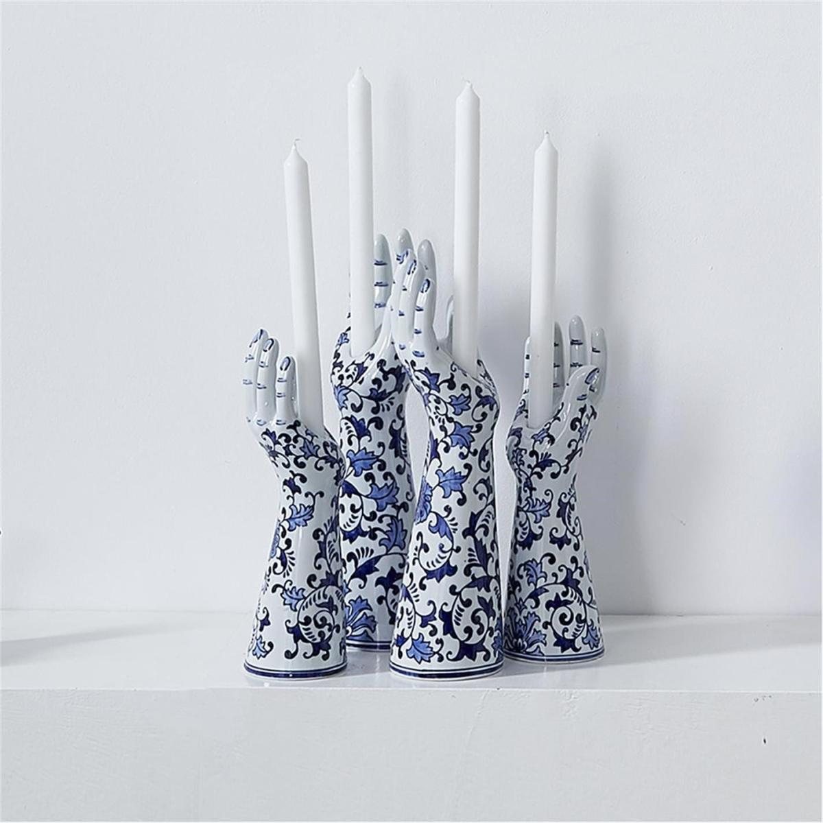 Hands up, who loves candles? If you love them as much as us, you’ll be crazy about this fun candle holder. In the shape of a hand, it holds a single taper candle high. In a classic chinaware pattern, it wins most fun candle holder, hands down.