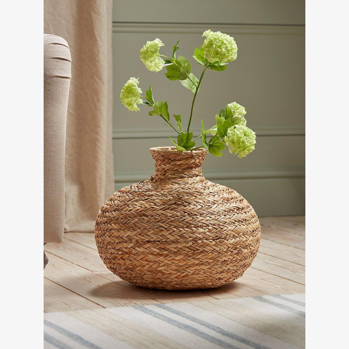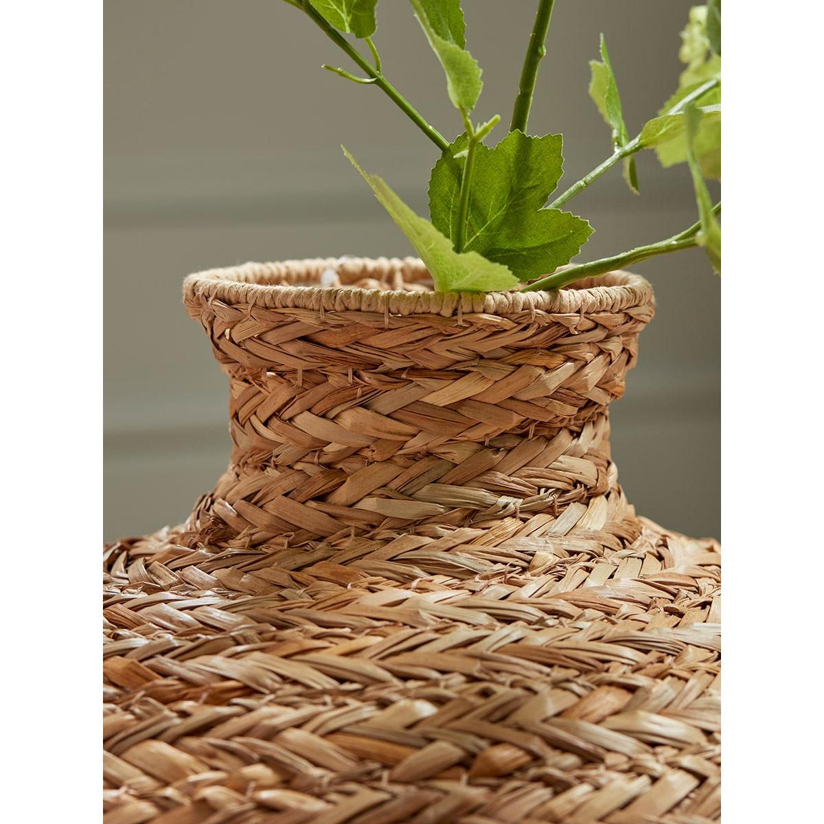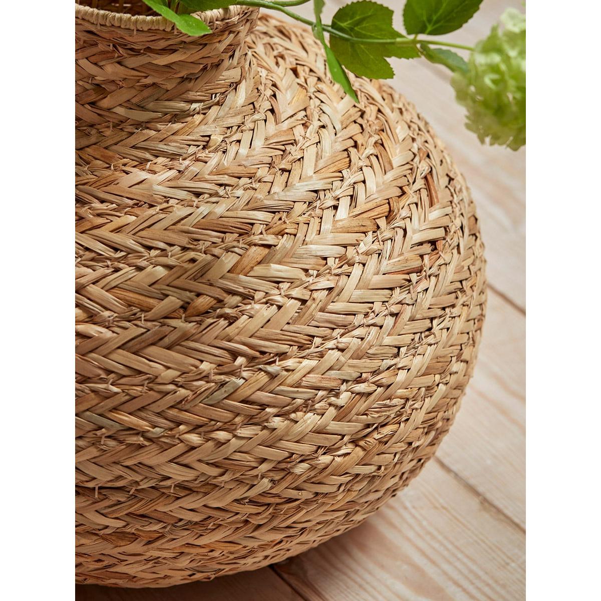 In a wide bottle shape, this vase is delicately handwoven from seagrass. Its natural material and simple design means it blends wonderfully into a variety of interiors as well as holding beautiful bouquets, like our range of faux flowers, in a variety of colours perfectly.  Also available in a smaller size.