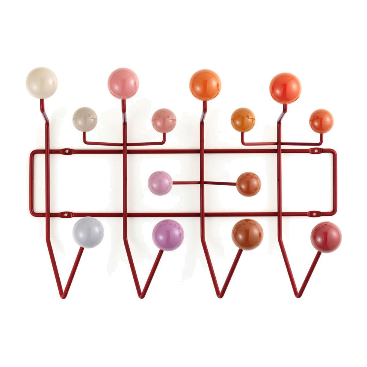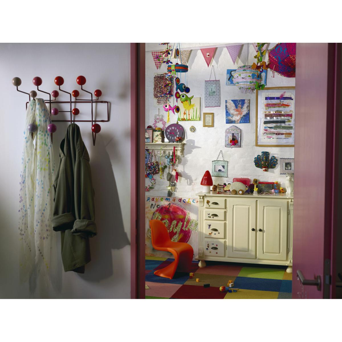 Enter into the legend of design with the Hang It All coat rack, designed in 1953 by Charles and Ray Eames. Treat yourself to an ORIGINAL iconic piece by Vitra. An original always keeps its value. An imitation is, and always will be, a cheap copy, a stolen idea. The difference is found in the quality and the obvious variations from the original model, but also in the emotional side of the authentic product. An original will stay with you for your whole life and will outlive you, being passed on to the next generation. Charles and Ray Eames are two of the most important designers of the 20th century. Their work includes furniture design, film and photography as well as exhibition design. Vitra is the only company with the authorisation to manufacture their products for Europe: if you own an Eames product manufactured by Vitra, you can be sure that it is an original. Copied, imitated but never duplicated, the Hang It All coat rack is a must have from the 1950s. There is an innate sense of humour in the work of Charles and Ray Eames that is reflected in the Hang It All. This coat rack decorated with coloured balls was originally intended for pre-schools. It encourages toddlers to hang up all their belongings, and choose a colour to pick their peg. As well as being functional, it is also a social and playful object to learn through playing. Its 14 hooks can be used to hang coats, jackets, hats, scarves, hats, umbrellas, gloves. Even towels in a bathroom. Wall-mounted and space-saving, it an easy addition to any room or small transitional space, hallway or entrance. Its welded and epoxy-lacquered steel frame is manufactured using the same technology that was developed for some of the Eames' chairs. The distance between each ball is always the same, so you can install several coat racks side by side and extend your structure for as long as you want. The original multi-coloured version has now been enriched with never before seen harmonies. This keeps it on top of the trends. Ray Eames was the one who came up with the colour scheme for the Hang It All. On its 100th anniversary in December 2012, Vitra worked together with the Eames Office to develop three versions of the coat rack in the luminous shades red, green and white.