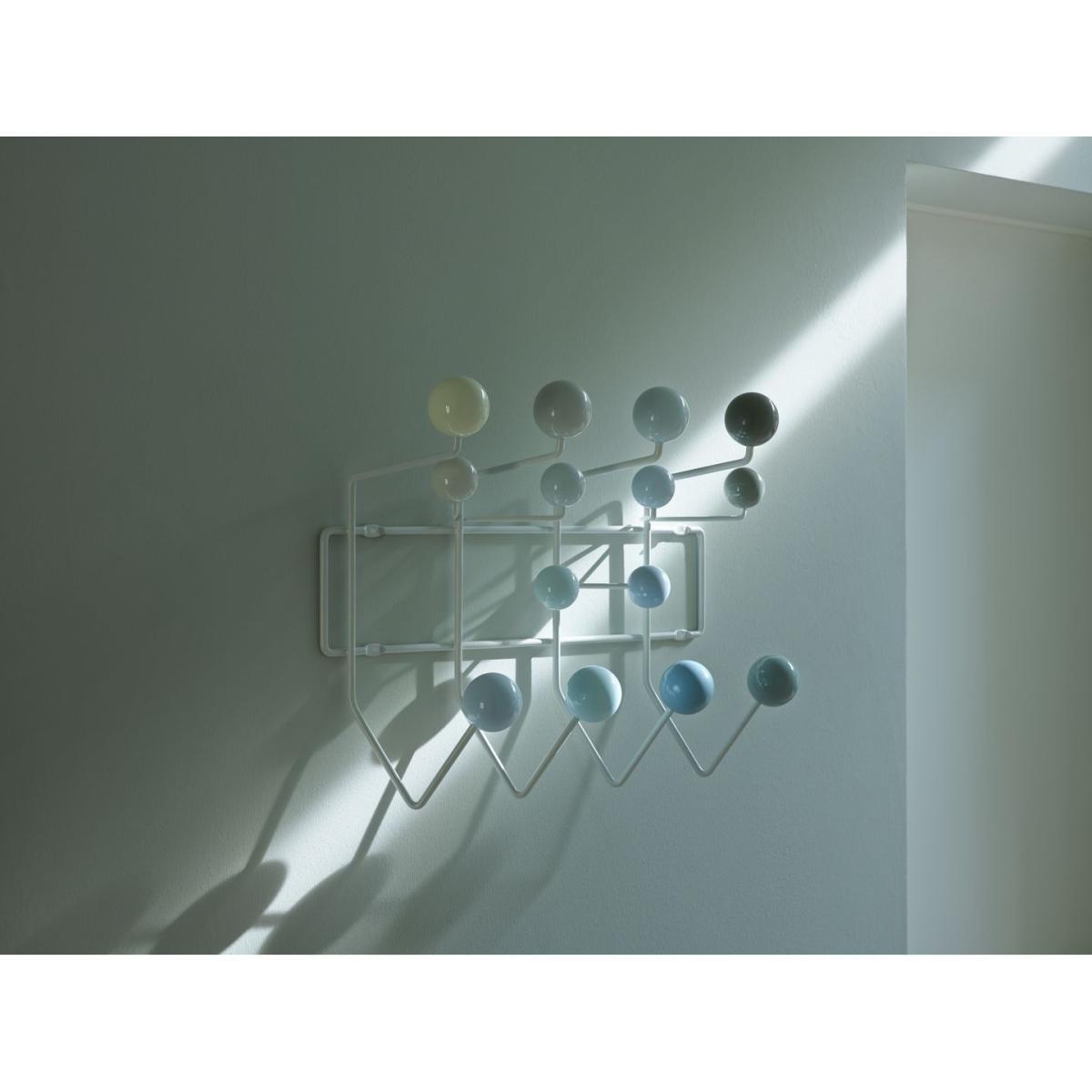 Enter into the legend of design with the Hang It All coat rack, designed in 1953 by Charles and Ray Eames. Treat yourself to an ORIGINAL iconic piece by Vitra. An original always keeps its value. An imitation is, and always will be, a cheap copy, a stolen idea. The difference is found in the quality and the obvious variations from the original model, but also in the emotional side of the authentic product. An original will stay with you for your whole life and will outlive you, being passed on to the next generation. Charles and Ray Eames are two of the most important designers of the 20th century. Their work includes furniture design, film and photography as well as exhibition design. Vitra is the only company with the authorisation to manufacture their products for Europe: if you own an Eames product manufactured by Vitra, you can be sure that it is an original. Copied, imitated but never duplicated, the Hang It All coat rack is a must have from the 1950s. There is an innate sense of humour in the work of Charles and Ray Eames that is reflected in the Hang It All. This coat rack decorated with coloured balls was originally intended for pre-schools. It encourages toddlers to hang up all their belongings, and choose a colour to pick their peg. As well as being functional, it is also a social and playful object to learn through playing. Its 14 hooks can be used to hang coats, jackets, hats, scarves, hats, umbrellas, gloves. Even towels in a bathroom. Wall-mounted and space-saving, it an easy addition to any room or small transitional space, hallway or entrance. Its welded and epoxy-lacquered steel frame is manufactured using the same technology that was developed for some of the Eames' chairs. The distance between each ball is always the same, so you can install several coat racks side by side and extend your structure for as long as you want. The original multi-coloured version has now been enriched with never before seen harmonies. This keeps it on top of the trends. Ray Eames was the one who came up with the colour scheme for the Hang It All. On its 100th anniversary in December 2012, Vitra worked together with the Eames Office to develop three versions of the coat rack in the luminous shades red, green and white.