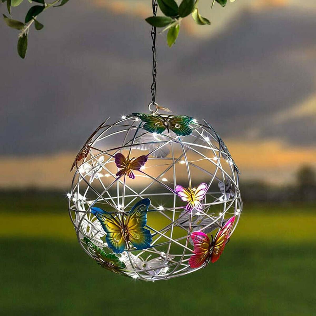 Hanging Butterfly Solar Ball Pendant - Silver