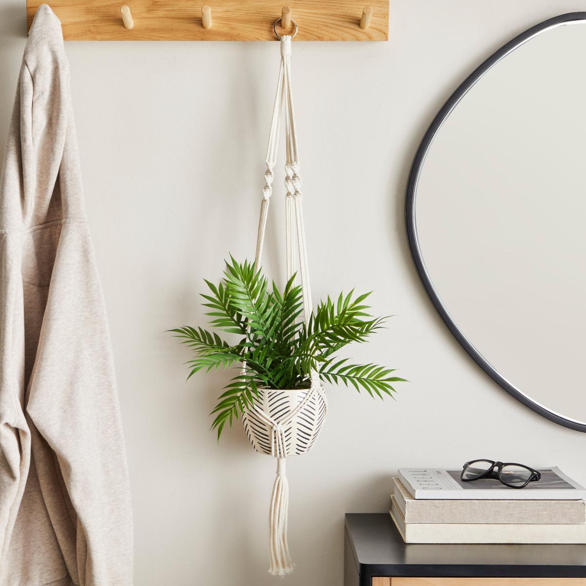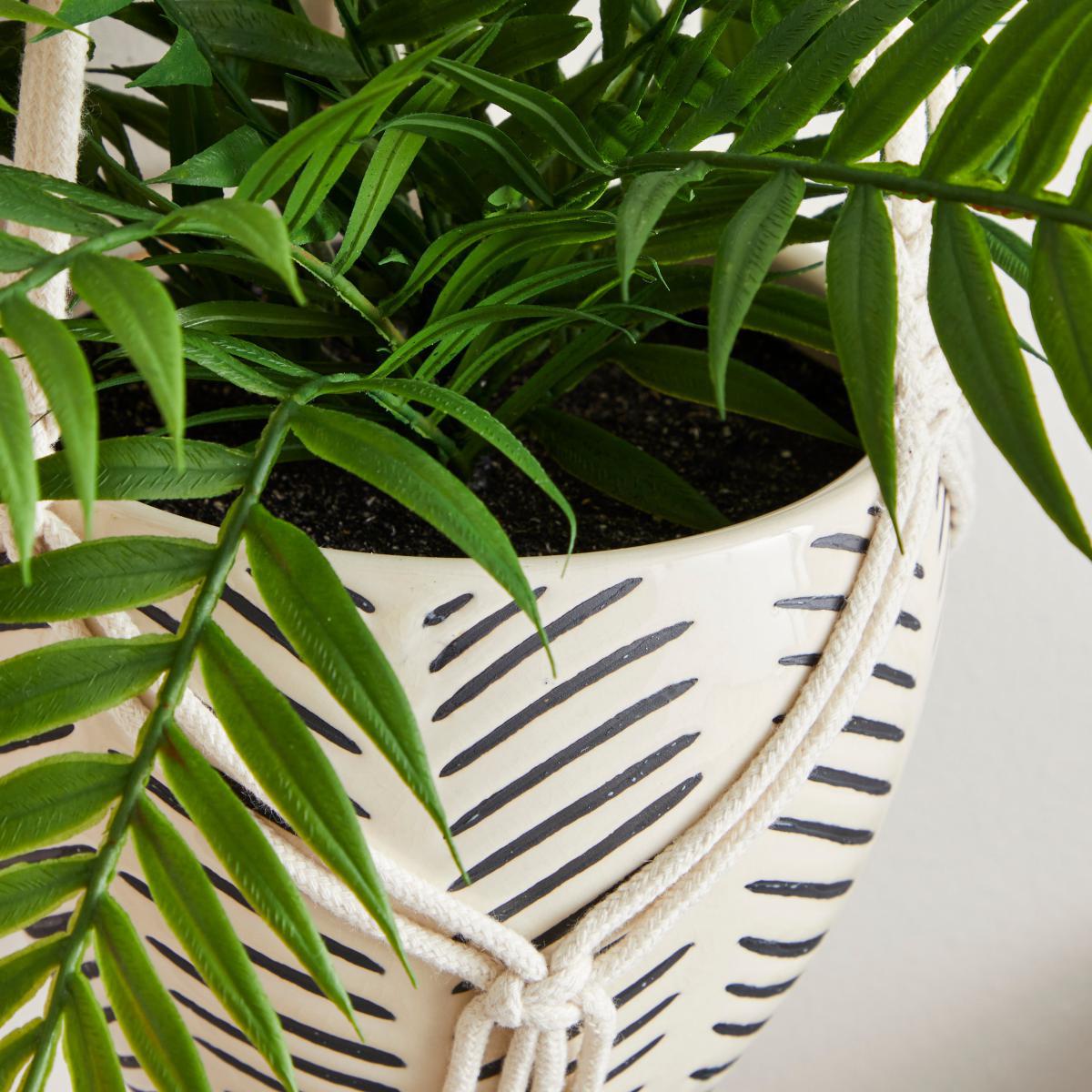 I love the hanging ceramic pot with macrame because it adds a touch of natural texture and understated style to a variety of interiors. Its neutral grey colour and simple design make it versatile, seamlessly fitting into boho, Scandinavian, or even minimalist spaces. It works beautifully in cosy corners, on windowsills, or hung at different heights to create visual interest. Practical styling tips include pairing it with lush, leafy plants for a lively feel, and positioning it where it can be appreciated without cluttering the space. Keep the surrounding décor simple to let the pot and greenery stand out, and consider using it indoors near natural light for optimal plant health.