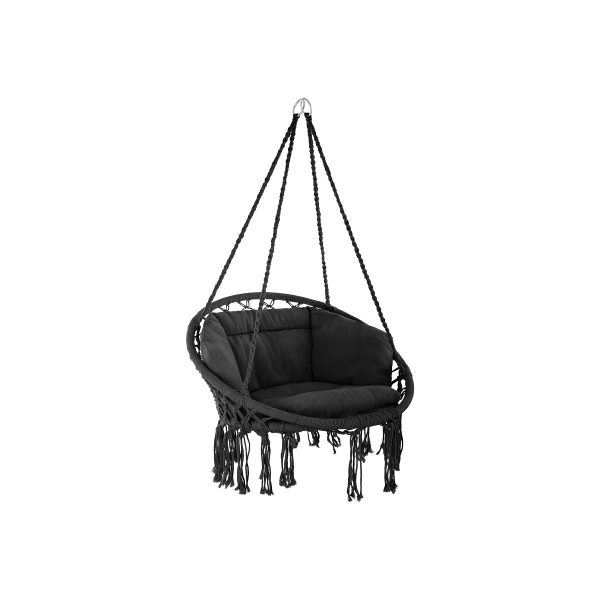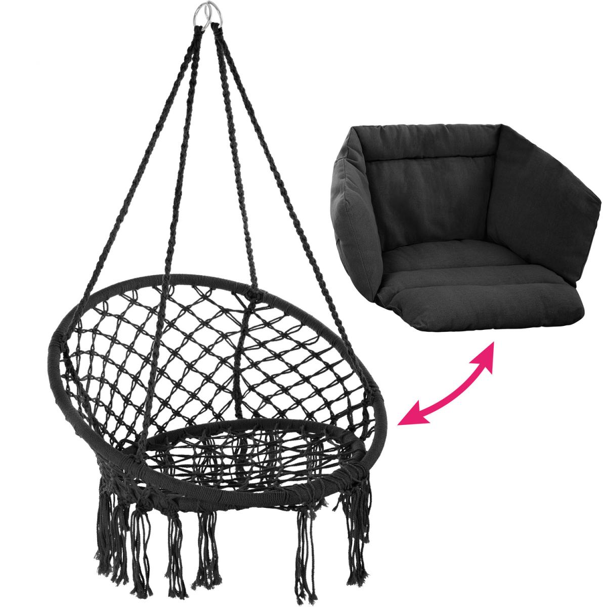 Float high above the stresses of everyday life in this comfortable, chic hanging chair from tectake. The hanging chair is the perfect piece of outdoor garden furniture where you can relax and unwind in your home after the stresses of everyday life. The super-soft cushions and the fine cotton weave with decorative tassels will mould to your body perfectly. Despite its light weight, the powder-coated steel, polyester and cotton construction is stable and durable. When folded, this swing chair can be easily stowed away and transported wherever you like, also ideal for storage during the winter months. With hanging chairs you can turn any outdoor space into an open air living room where you can enjoy fresh air and sunshine. Relax and enjoy an exciting book or a lovely glass of red wine as you swing in this cosy hanging chair from tectake.