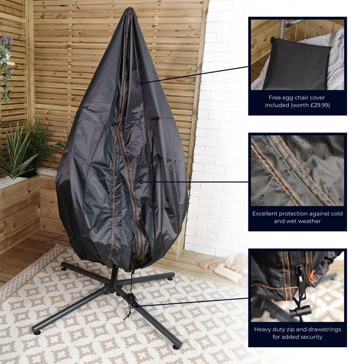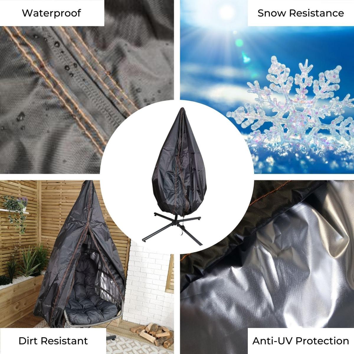 Introducing the Samuel Alexander Hanging Egg Chair Cover, designed to protect your outdoor furniture investment from the elements. Made with high-quality waterproof fabric and anti-UV technology, this cover provides reliable protection against rain, wind, dust, and dirt, ensuring that your standing egg chair is always protected, even during the harshest weather conditions. With dimensions of 115x190cm, this cover fits snugly over your garden swing chair or hammock, keeping it clean and dry all year round. The heavy-duty zipper provides easy access to your chair while ensuring that it stays securely covered when not in use. The Samuel Alexander Egg Chair Cover is easy to clean with just a damp cloth, making it the perfect solution for those who want to spend less time maintaining their outdoor furniture and more time enjoying it. And with its stylish and practical design, this cover is perfect for those with balcony furniture, allowing you to keep your swing chair looking its best, no matter what the weather. Whether you're protecting your egg chair from sun damage or keeping it dry during a rainstorm, the Samuel Alexander Egg Chair Cover is the perfect choice for outdoor furniture protection. Don't let the elements ruin your investment - choose the Samuel Alexander Egg Chair Cover today and enjoy peace of mind knowing that your standing egg chair is always protected. Invest in the best for your outdoor furniture with the Samuel Alexander Egg Chair Cover, the ultimate solution for protecting your swing chair from the elements.