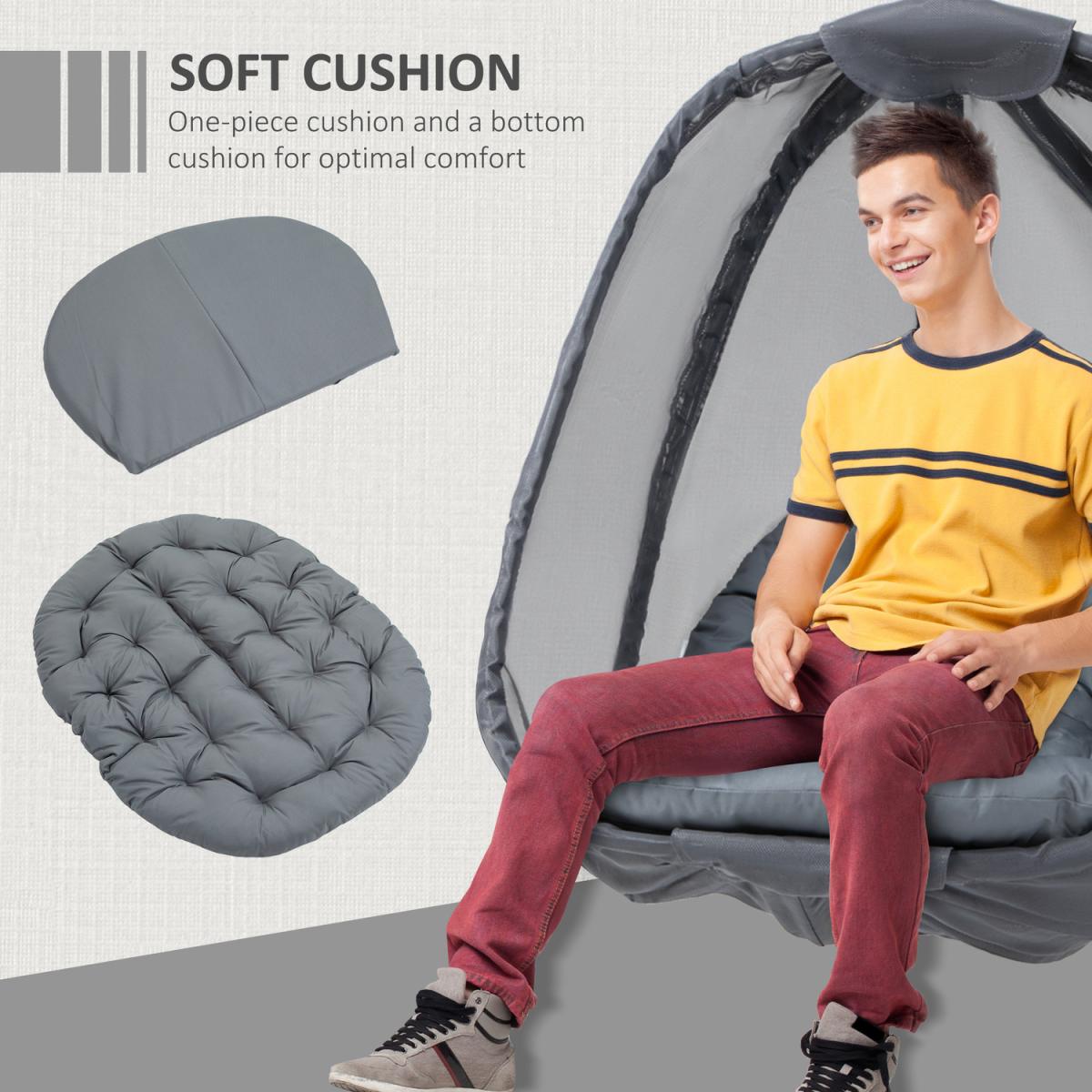 A coveted spot to relax by yourself, in comfort, all day long? Yes please. This Outsunny chair is one to have in the garden, on the patio - or even in the bedroom or lounge if you like. It comes in two parts: the fabric seat and the metal frame. The seat is removable so it can be stored away if you want. The powder coated steel is fully supportive, with three legs to ensure balance. Comes complete with a thick padded cushion for comfort.