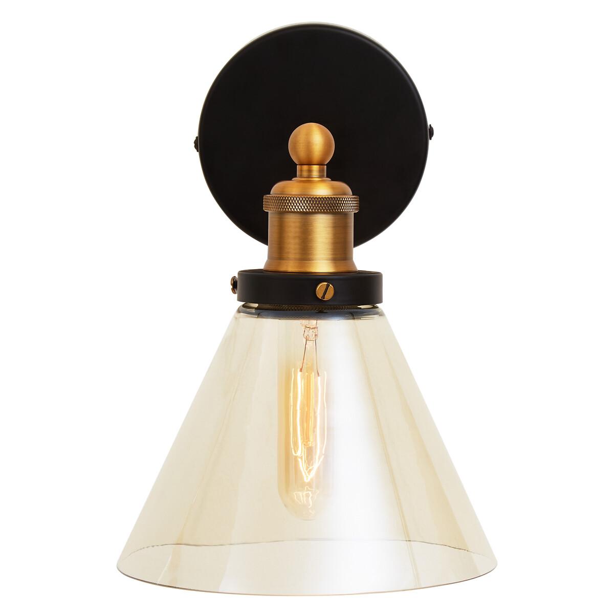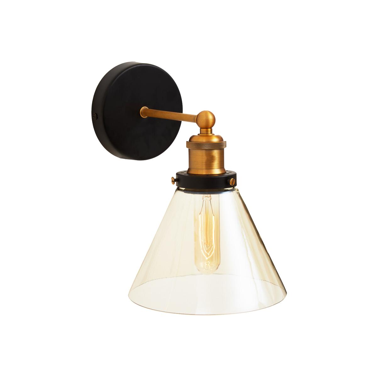 This conical shaped wall light in a minimalist form has a movable part that allows adjusting the angle effortlessly. Featuring a cone shaped champagne glass sconce, this wall light provides ample downlighting. The transparent shade contrasts the warm metallic industrial inspired arm with decorative screws, connected to a sturdy matte black perforated rim. Product Dimensions: 27x25x18cm Bulb Type: E27 Maximum Wattage: 60 WBulb Included?:No. Number of Bulbs Required: 1. This product will be dispatched by one of our trusted suppliers. You’ll be contacted by their selected courier about your delivery.