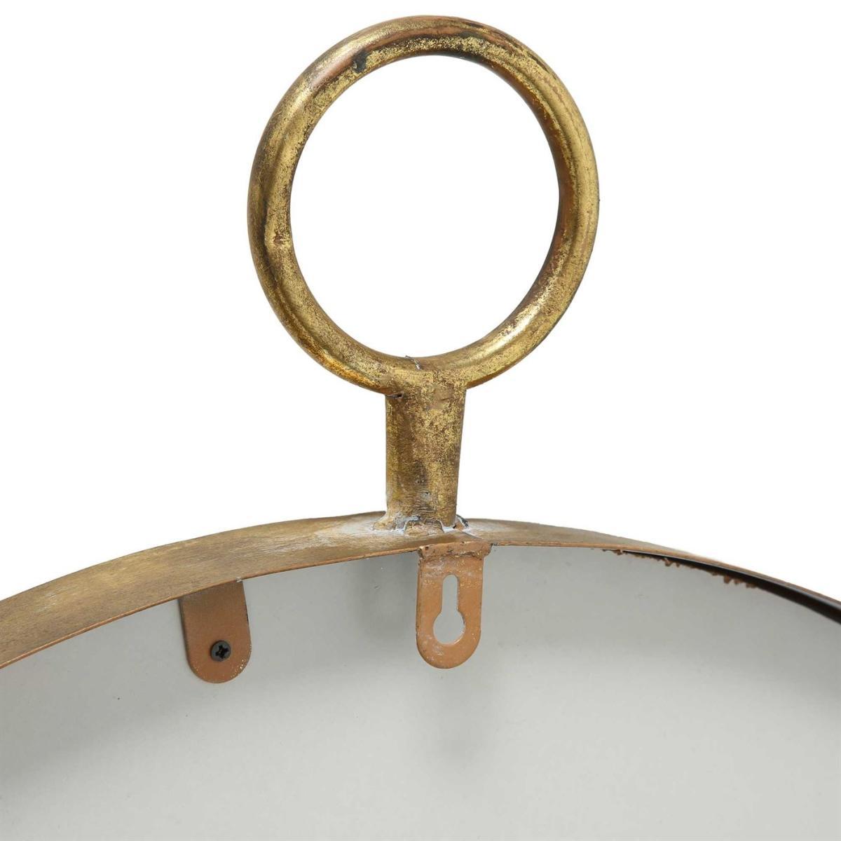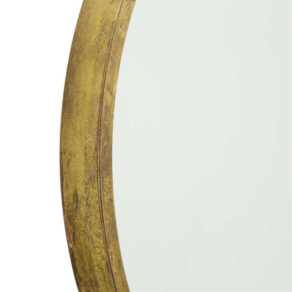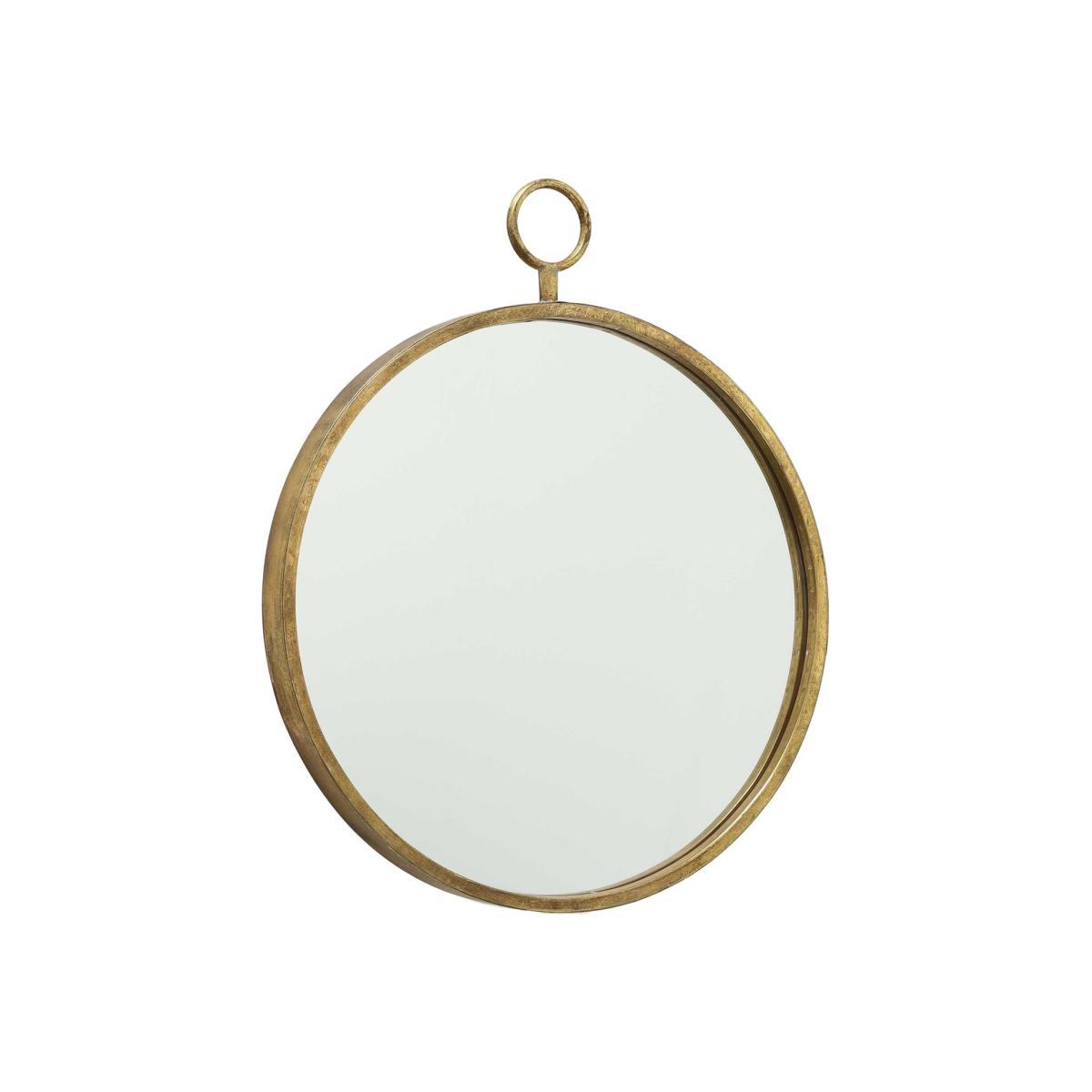 Design. Finished in antique gold for a hint of vintage charm, this round mirror will bring a rustic touch to any modern interior. Loop detail to the top gives it a subtle style edge, while the concealed fixture ensures a seamless look. A great way to brighten your space and tap into the metallics trend, this gorgeous gold mirror will see you through many seasons.