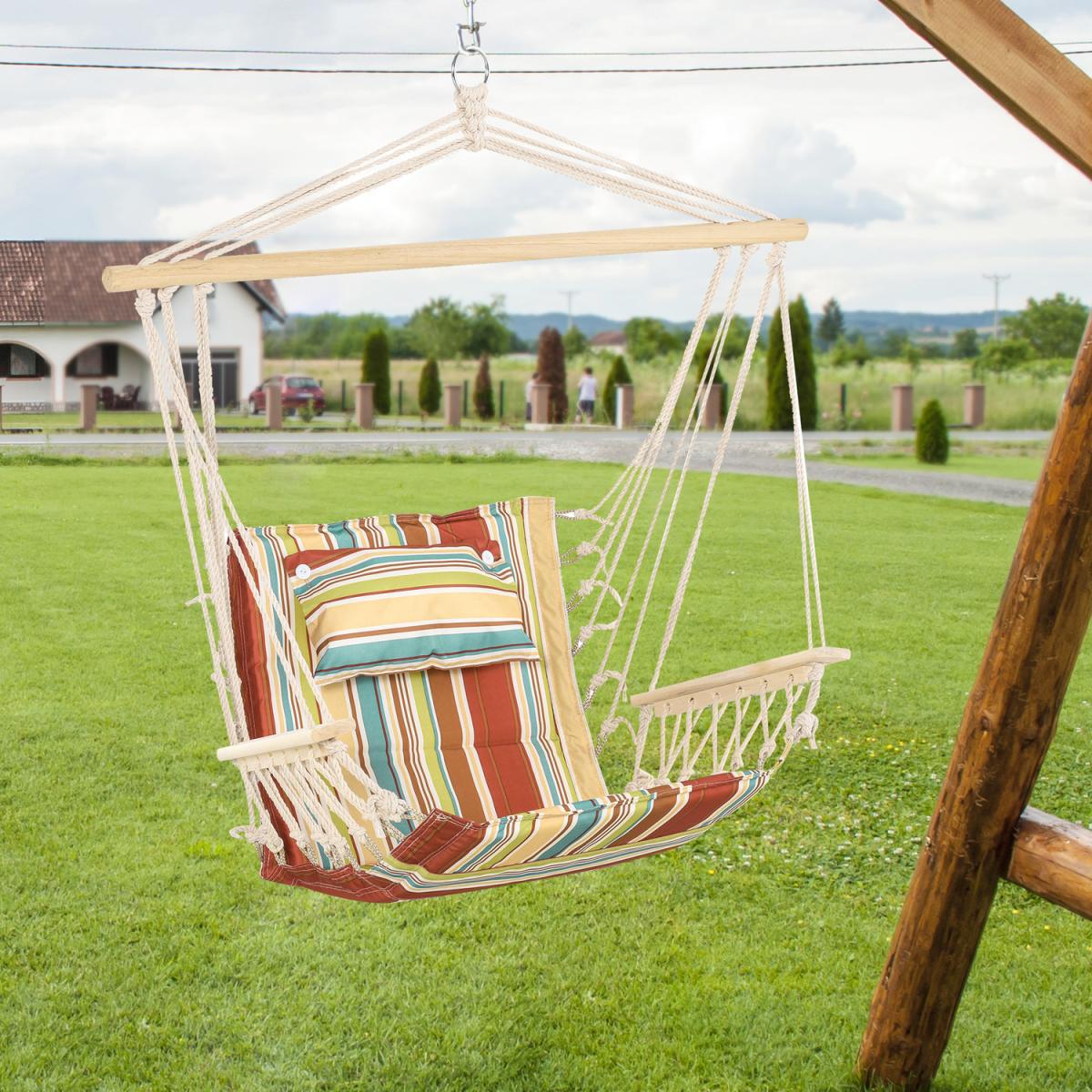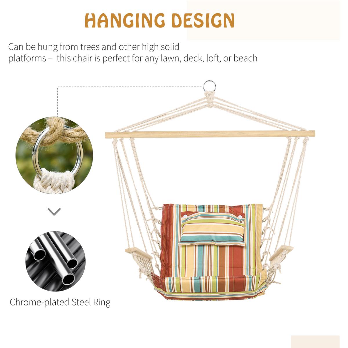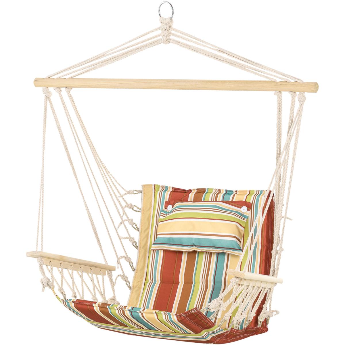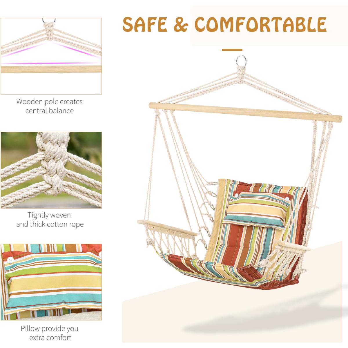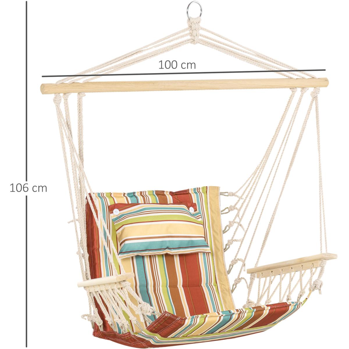 Cocoon yourself in comfort, creating the ultimate hideaway place outdoors with this hammock seat from Outsunny. Its rigid structure, which handles up to 105kg, is formed from thick high-quality grade rope for safety, with the seat securely attached for full support. It's finished with wooden armrests and a wooden bar on the top to keep the balance central and stable. A spot you'll love sinking into for a long afternoon under the sun.