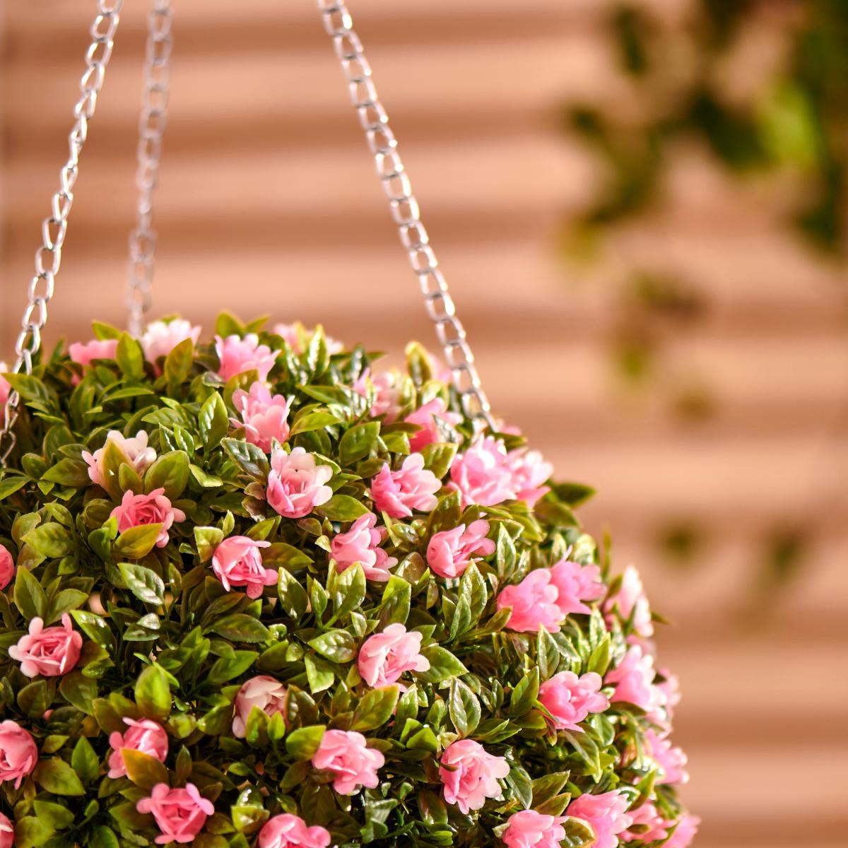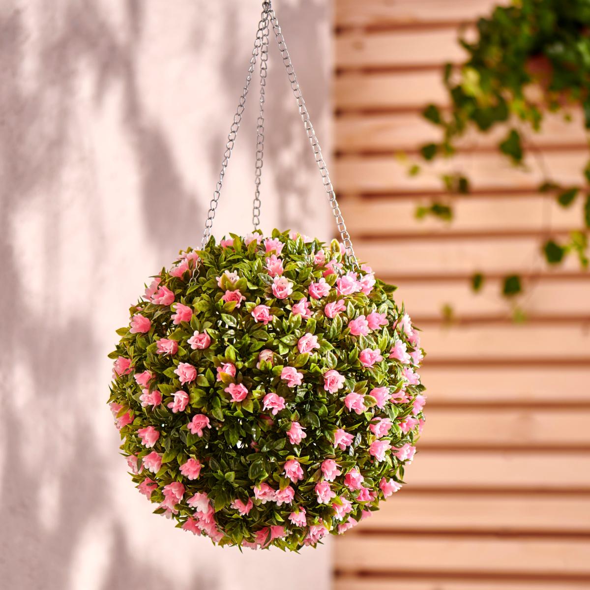 Decorate your outdoor space with this beautiful, romantic flower topiary ball. This stunning ball has been handmade to look natural and is waterproof, making it perfect for outdoor use.