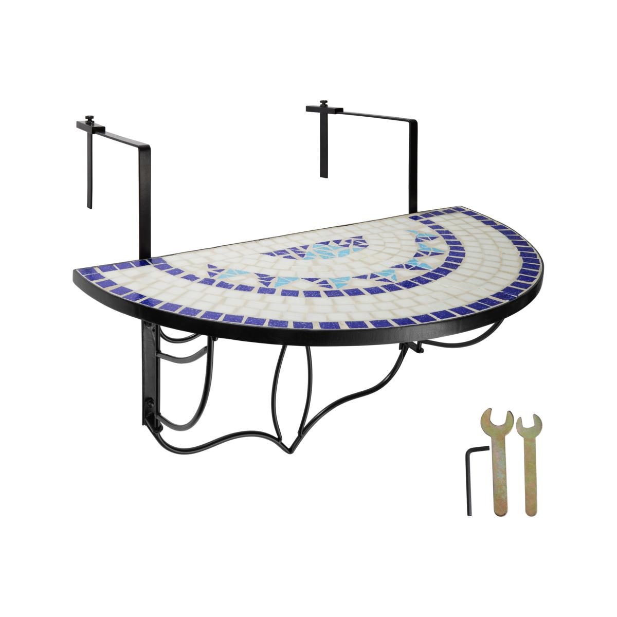 On tectake's balcony table, the best ingredients will always be within reach for a successful summer's day. The sturdy structure can be easily attached to the railing using two metal hooks. The semicircular surface with a mosaic pattern radiates a Mediterranean flair and offers lots of space. After use, the hanging table can simply fold up to save space. The indispensable accessory for a holiday on the balcony or in the outdoor home garden tectakes handy balcony table.