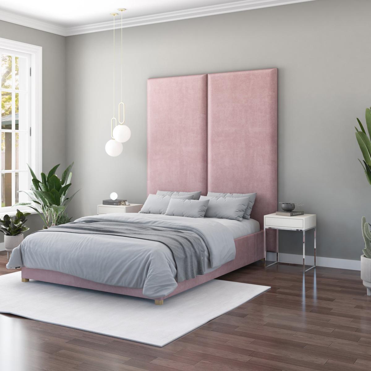 * Headboard panel can be mounted vertically or horizontally* Add multiple panels to create a unique look* Plush velvet fabric* Wall-mounted, no need to attach to your bed* Supplied with custom mounting unit* 35mm layer of padding for extra comfort* Hand-crafted in Yorkshire With versatile mounting options, these panels can be installed horizontally or vertically, allowing you to customise the layout to suit the dimensions of your wall. Mounting just a few panels behind your bed instantly creates a stunning headboard, requiring minimal installation effort. Alternatively, push the boundaries by adding more panels to craft a truly luxurious feature wall Finished in a plush velvet fabric, this headboard panel is offered in a captivating selection of colours to complement your home décor. For the adventurous decorator, mixing and matching different colours creates a uniquely personalised look. With a generous 35mm thick layer of sumptuous padding, these panels ensure both style and comfort. Crafted with care from sustainably sourced wood and meticulously upholstered by our expert team in our dedicated factory in Leeds, each panel guarantees British-made quality you can trust. Our panels come complete with a custom-designed mounting system, including wooden hangers, screws, and wall plugs, facilitating easy installation for those with basic DIY skills. Once mounted, the panels effortlessly hang on the wall, providing a hassle-free addition to your space.