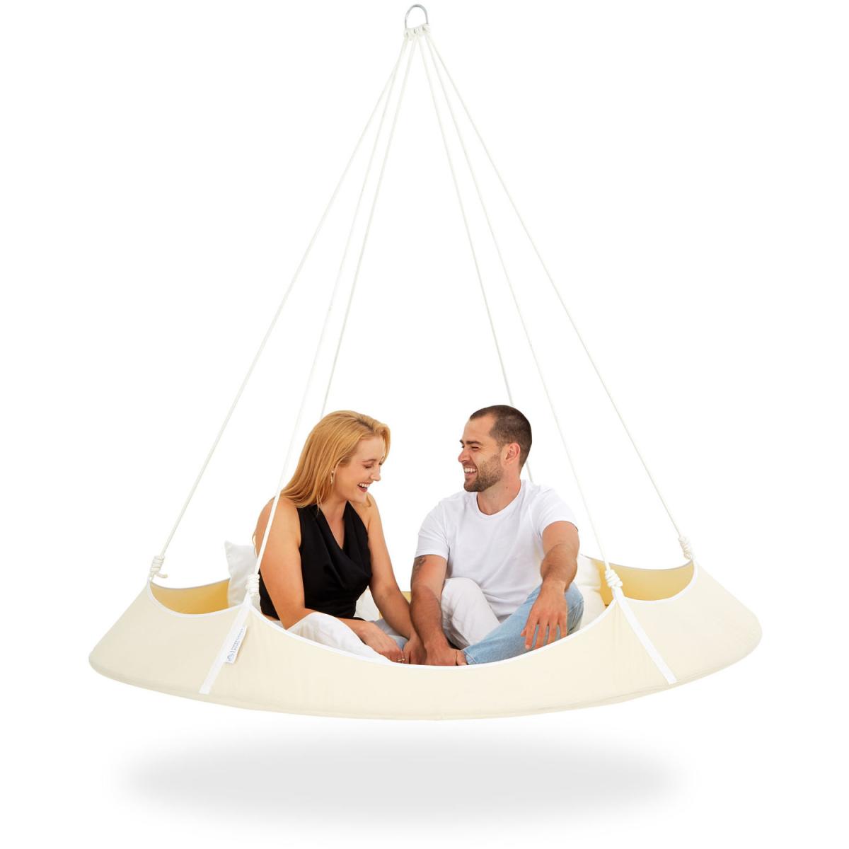 Hangout Pod 1.8m Circular Family Hammock Bed - Cream & White