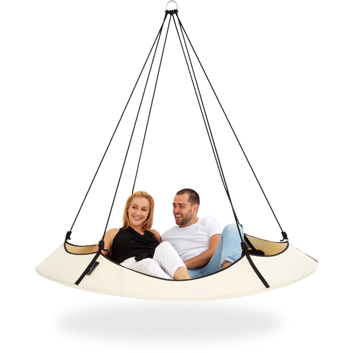 Hangout Pod 1.8m Circular Family Hammock Bed - Cream & White