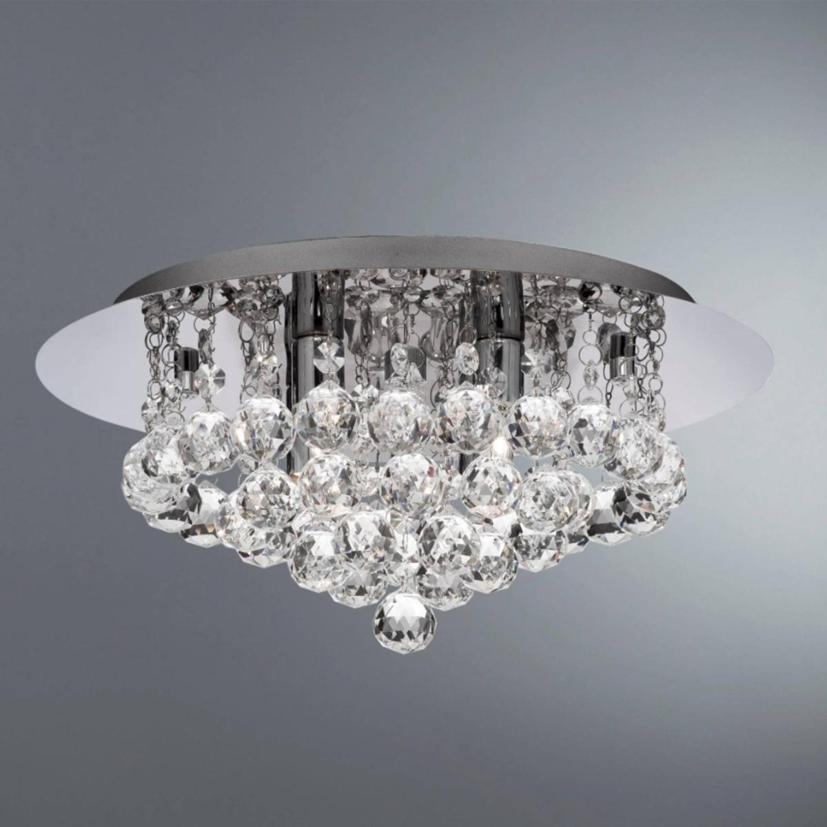 Glamorous ceiling light boasting a polished chrome finish throughout. A striking addition to your home, this semi-flush ceiling light is part of the Hanna range from Searchlight. Round in shape and boasting a polished chrome finish, the fitting comes complete with delicate crystal detailing throughout, offering a sparkly effect when lit. It is ideal for use in lounges, bedrooms, hallways and dining rooms. We recommend using our 3w LED G9 capsule bulbs which are a great replacement for standard halogen bulbs. Glamorous ceiling light boasting a polished chrome finish throughout. A striking addition to your home, this semi-flush ceiling light is part of the Hanna range from Searchlight. Round in shape and boasting a polished chrome finish, the fitting comes complete with delicate crystal detailing throughout, offering a sparkly effect when lit. It is ideal for use in lounges, bedrooms, hallways and dining rooms. We recommend using our 3w LED G9 capsule bulbs which are a great replacement for standard halogen bulbs.