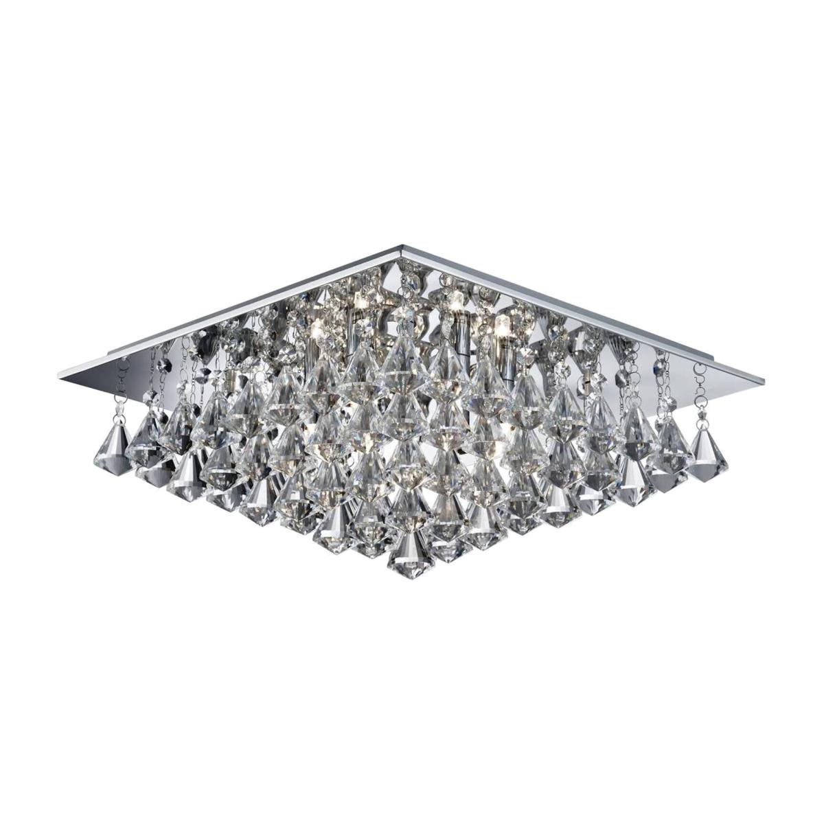 Hanna 6 Light Square Ceiling Semi Flush Light Chrome Pyramid Crystals, G9 - Chrome