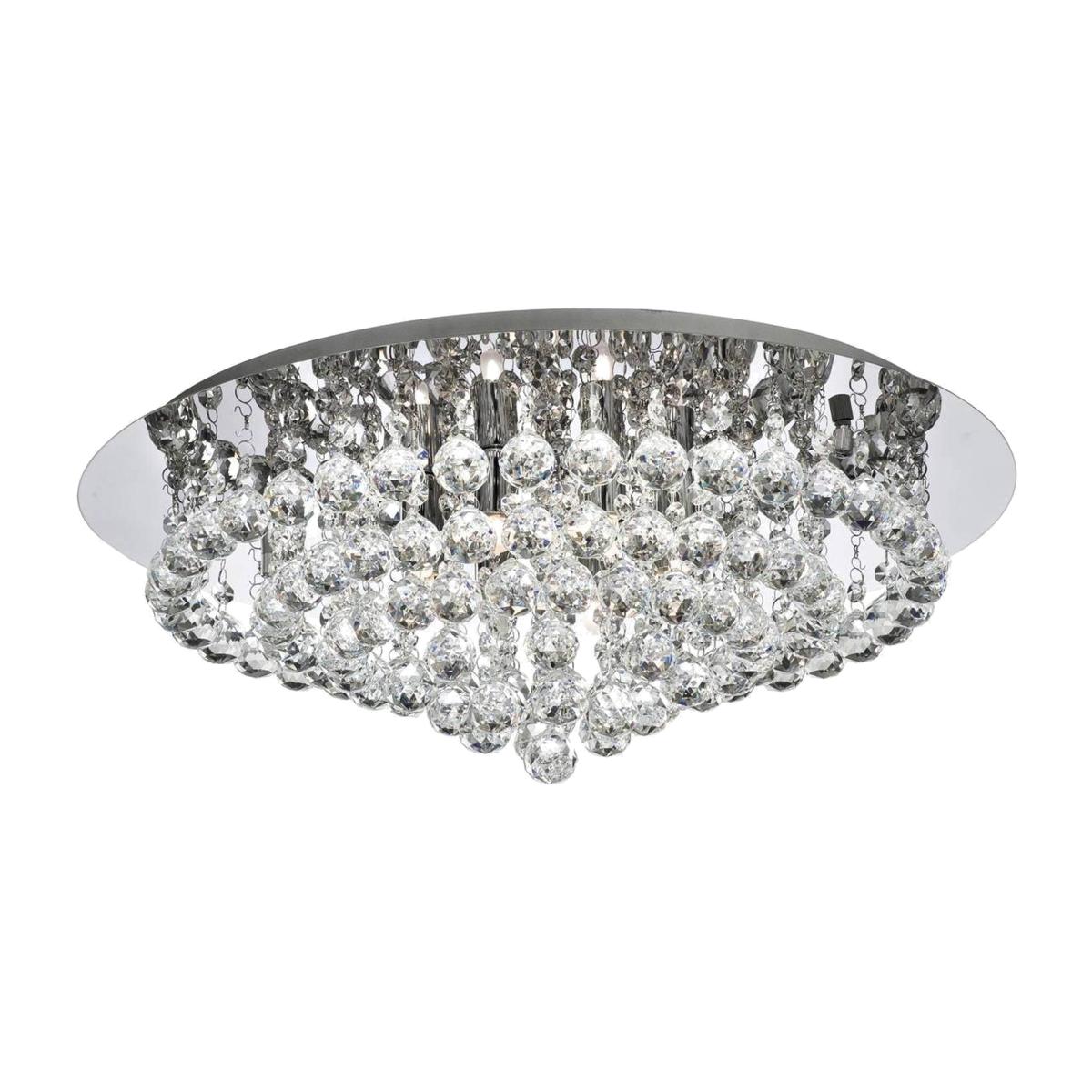 This Chrome 8 Light Ceiling Fitting with Clear Crystal Balls looks magnificent on any bedroom, living room, dining room or kitchen ceiling. The luxurious light fits flush to the ceiling and features eight lamps surrounded by decadent crystal trimmings and balls. And the elegant mirrored backplate completes the look of this large, contemporary chandelier.