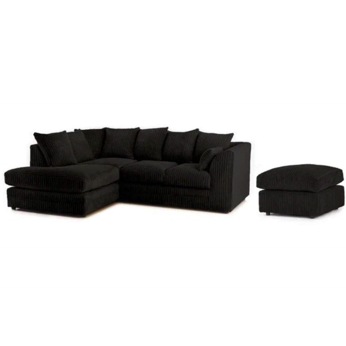 Hanna Jumbo Cord Corner Sofa With Footstool - Black / Right-hand