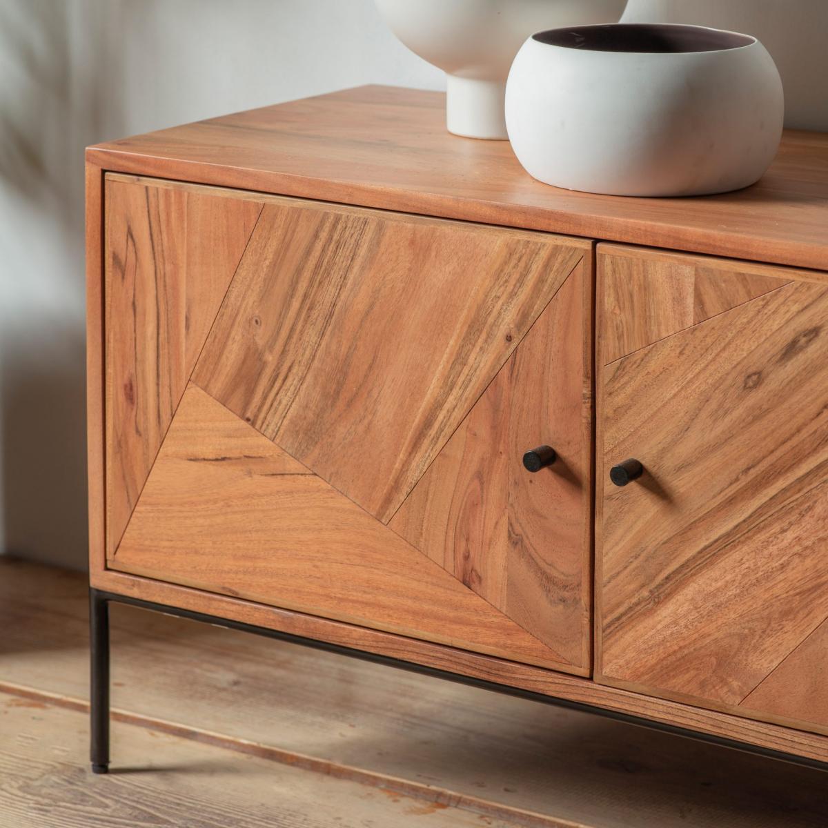 I love how the Hannah Acacia Wood Media Unit brings natural warmth and texture to a variety of interiors. Its clean, minimalist design makes it versatile enough for both contemporary and Scandi-style spaces, while the rich acacia finish adds a touch of sophistication. Styling-wise, it works well when paired with soft ceramics, potted greenery, or metal accents to create visual interest without clutter. In smaller rooms, its slim profile offers practical storage solutions without overwhelming the space, making it an excellent choice for a sleek TV setup or decorative display. Keep accessories understated and let the natural wood grain be the feature for a timeless, effortlessly styled look.
