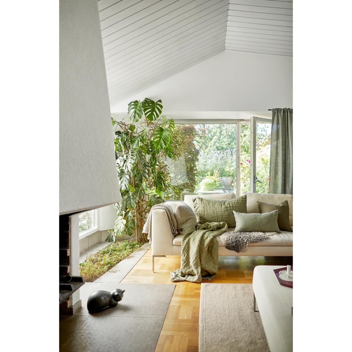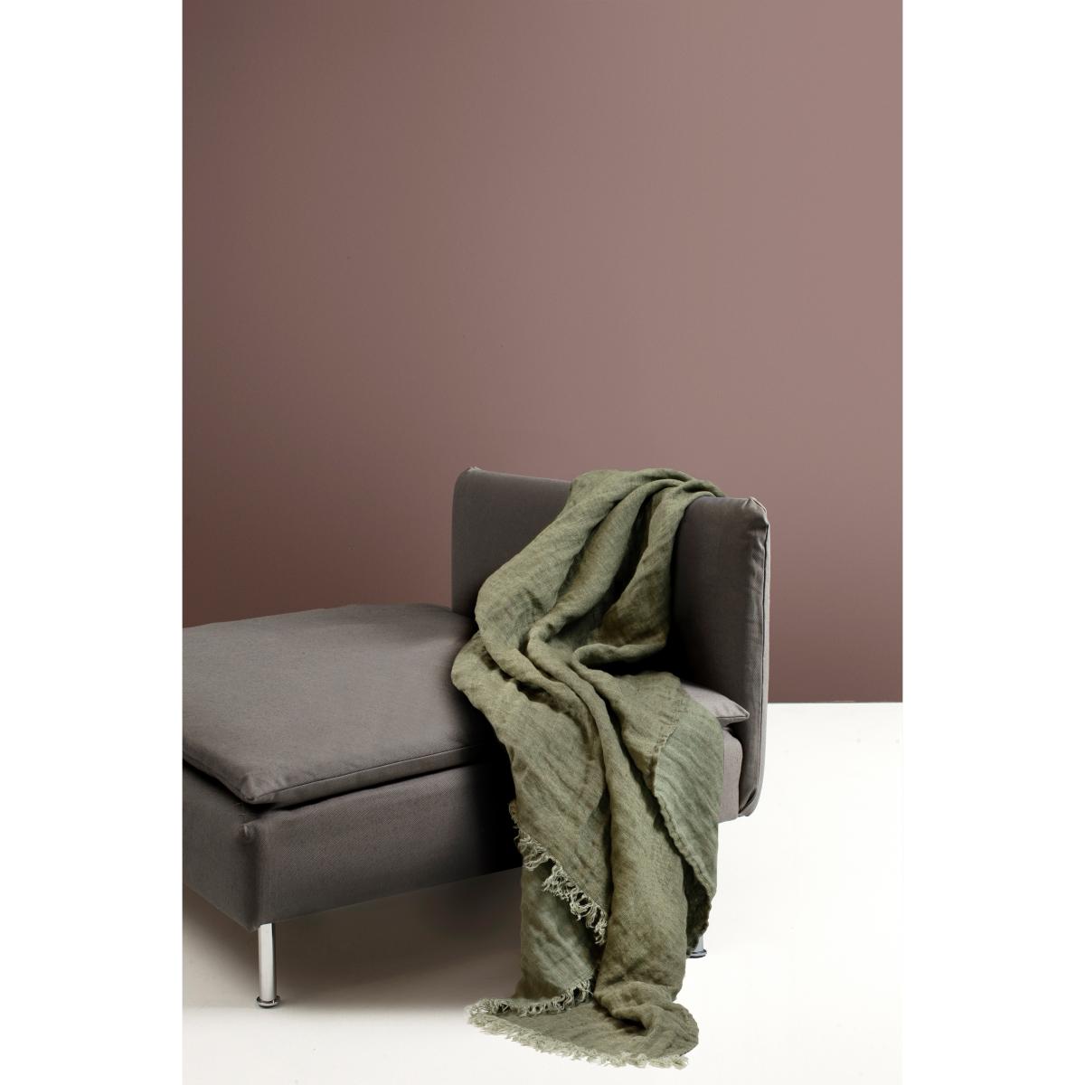 Hannelin throw from the Swedish brand Himla is soft and cool, made of 100% linen. This throw has sewn seams along the long sides, fringes along the short sides and a wrinkled design that fits on the bed, the sofa or the outdoor furniture. Available in several colours and can be combined with other linen textiles from Himla.