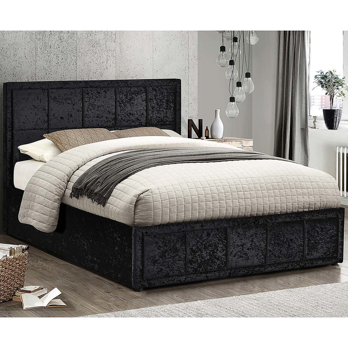Hannover Black Crushed Velvet Ottoman Bed Black