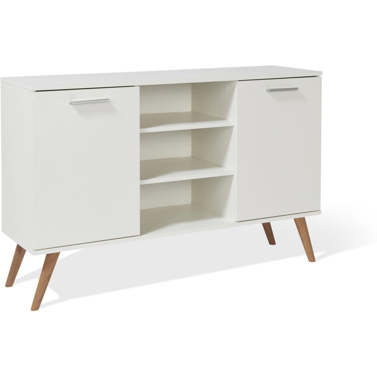 I love the Hannu 2 Door Sideboard for its sleek, minimalist appeal and versatile clean lines, which make it a great fit for modern or Scandinavian-inspired interiors. Its Alpine White finish adds a fresh, airy feel, helping to brighten up spaces like dining rooms, living rooms, or even bedrooms. Practical styling tips include pairing it with natural textures such as wooden bowls or woven baskets for warmth, or contrasting it with bold coloured accessories for a punch of visual interest. The open shelving offers handy storage for everyday items or display pieces, while the closed doors keep clutter out of sight, making it both functional and stylish in a range of settings.