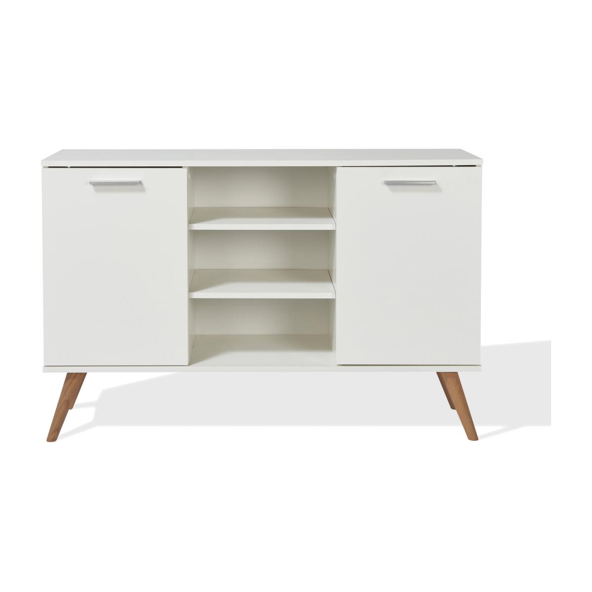 The Hannu Sideboard features a Scandinavian style, perfect as a display piece for the living room. This open sideboard is an impressive fusion of style and practicality, designed to complement your home and provide an array of storage space.