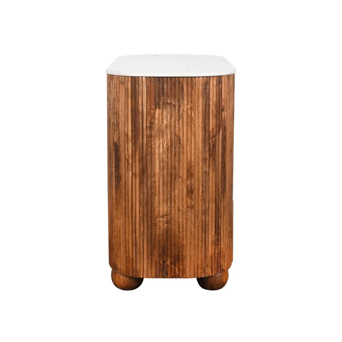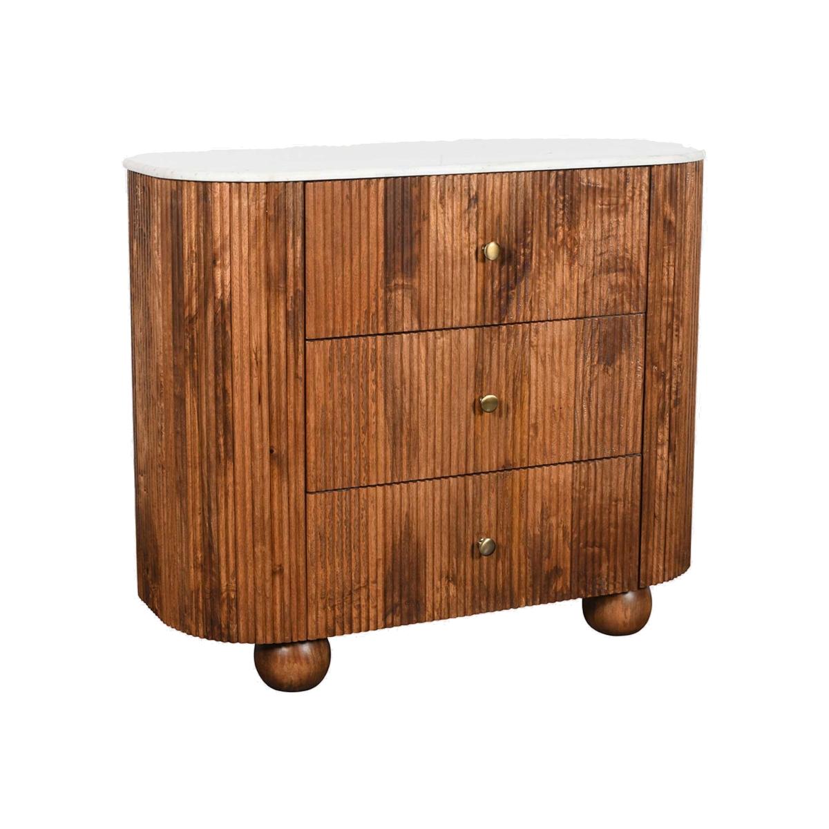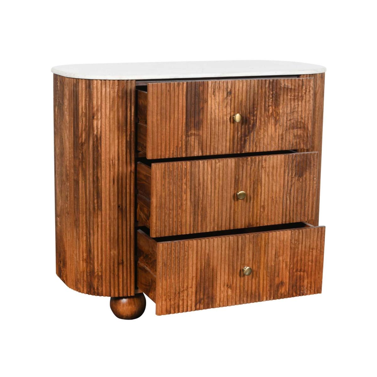 The Hanoi Wave Mango Wood 3 Drawers Chest of Drawers with White Marble Top combines elegance and functionality in a refined, natural design. Crafted from durable mango wood, this piece features three spacious drawers with an intricate wave pattern, adding an artistic touch to any room. The white marble top introduces a luxurious contrast, perfect for displaying decor or essentials. Supported by stunning circular legs, the chest balances stability with unique, modern style, making it a standout piece that seamlessly blends into both traditional and contemporary settings. Ample drawer space ensures practical storage for various items