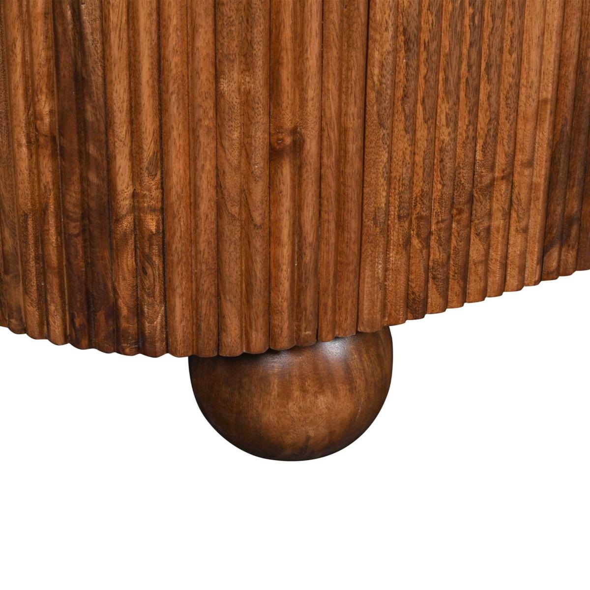 I love the Hanoi three-drawer unit for its fluted sheesham panels and soft curves - it adds texture to modern, Scandi or mid-century spaces. The warm wood tones and brass knobs make it easy to style: top it with a slim lamp, ceramic vase and a couple of art books in an entrance hall or bedroom. Pair it with natural linens, a rattan mirror and some greenery for a relaxed look, or place it against a muted accent wall to show off its shape. Keep accessories low and balanced so the detailing stands out, and use drawer organisers to keep the surface clutter-free.